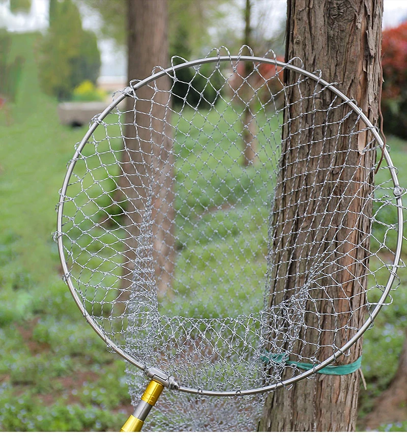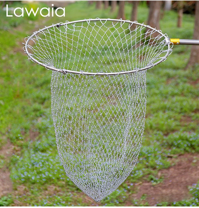 Lavaia plegable red de pesca cabeza de red trenzada gris bolsillo de red de acero inoxidable cabeza de anillo Anti-colgar mano red equipo de pesca