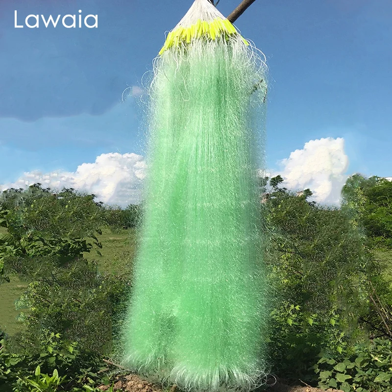 Lawaia-Red pegajosa de tres capas, Red de seda verde de 80m, Red de trampa para peces, flotadores de plástico agresivos, Red de fregadero