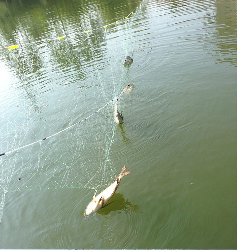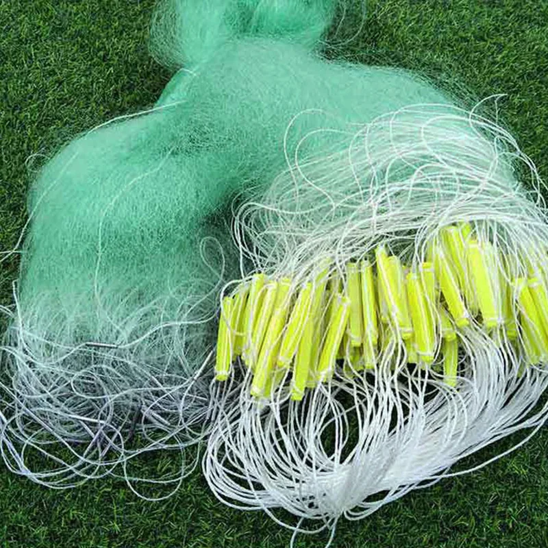 Lawaia 100M/80M Gillnet de espesor, red de pesca de 3 capas, accesorios de equipo de pesca de seda verde, trampa de pesca, red, flotador de plástico