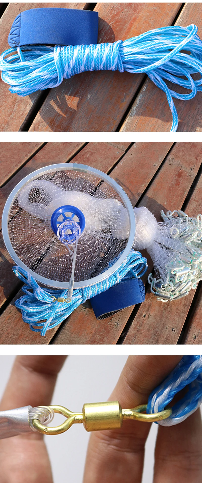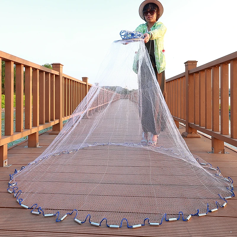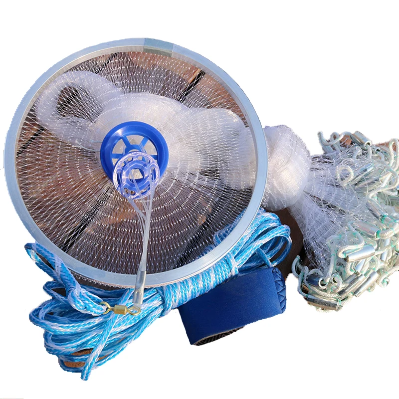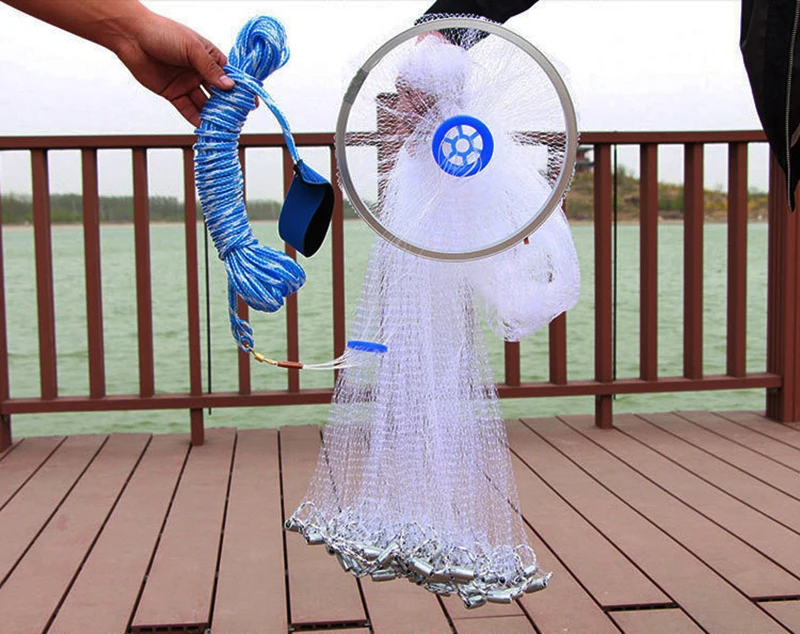 Anillo de aluminio Lawaia, Red de lanzamiento de pesca, monofilamento, línea de pesca de nailon, Red de fundición manual con plomo de acero, red telescópica