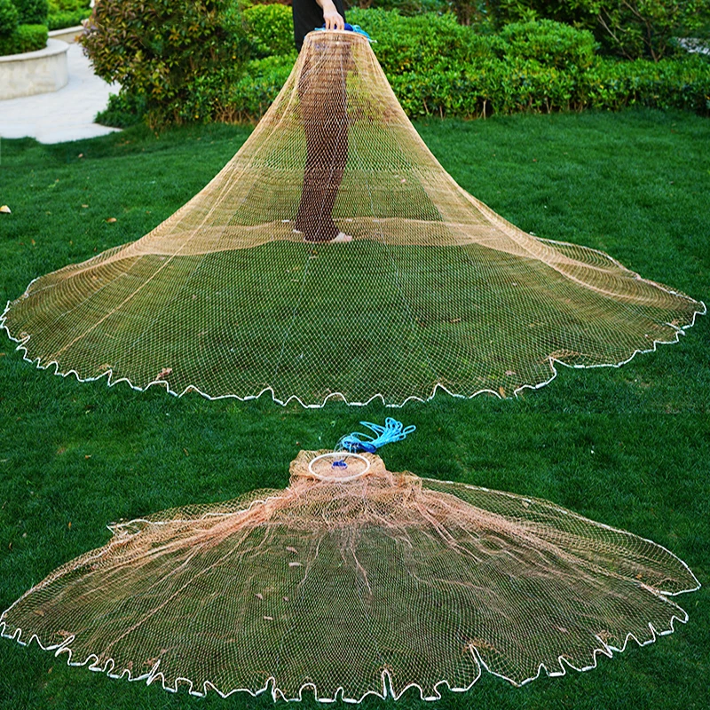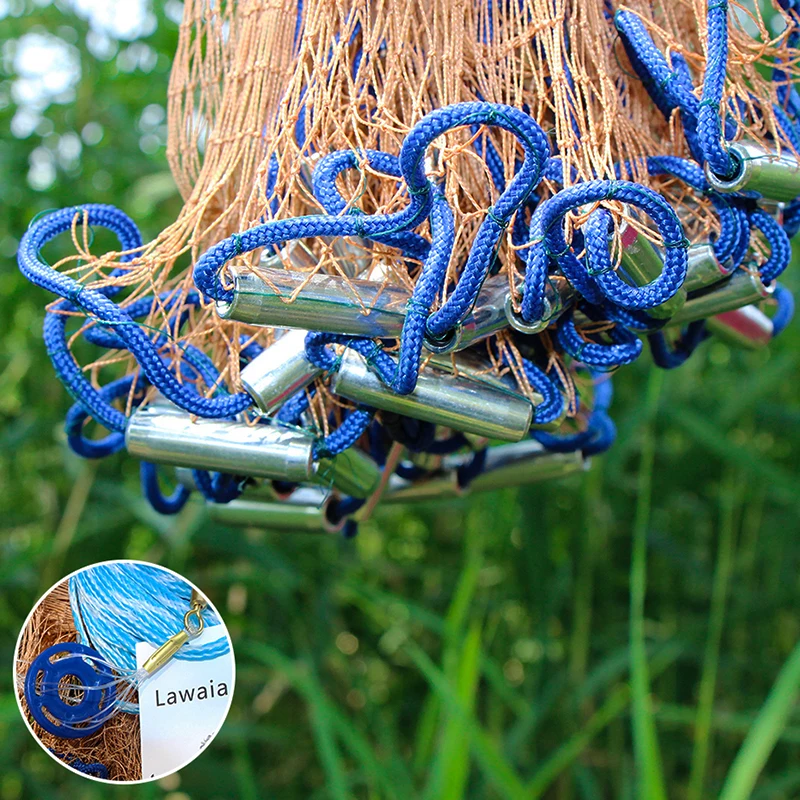 Lawaia-Red de pesca con rejilla de aluminio, anillo giratorio, redes de lanzamiento manual para pescar, colgante de acero de aguas poco profundas