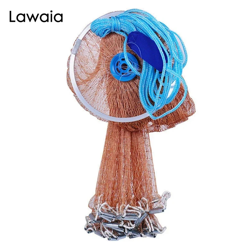 Lawaia-Red de pesca con rejilla de aluminio, anillo giratorio, redes de lanzamiento manual para pescar, colgante de acero de aguas poco profundas