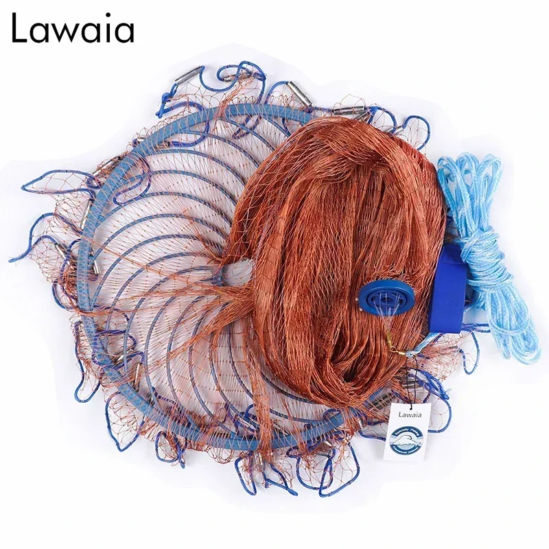 Red de pesca Lawaia, malla con anillo azul, jaula de pesca, red, alambre trenzado naranja, equipo de pesca, aparejos, colgantes de Metal