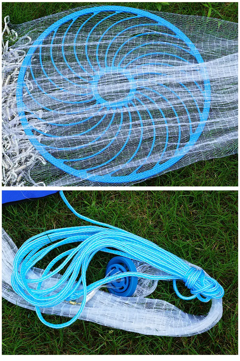 El anillo azul debe ser montado en la red de pesca por usted mismo.
