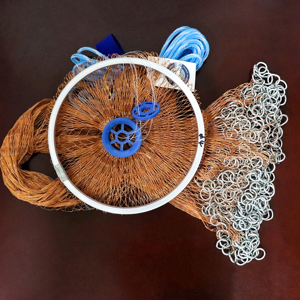 Lawaia-red de pesca plegable con cadena de hierro fundido, malla pequeña con colgante, diámetro de 2,4 M-4,2 M