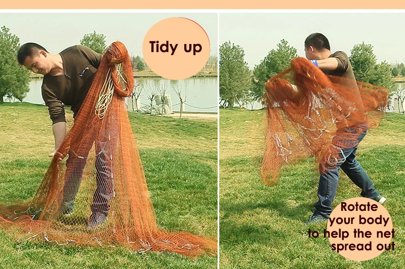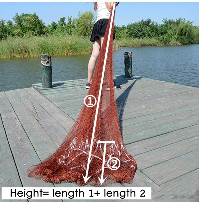 Redes de pesca de red fundida a mano de estilo tradicional Lawaia, línea trenzada, Red de aterrizaje hecha a mano con plomos de acero, altura de 2,5 M/3,5 M/4M