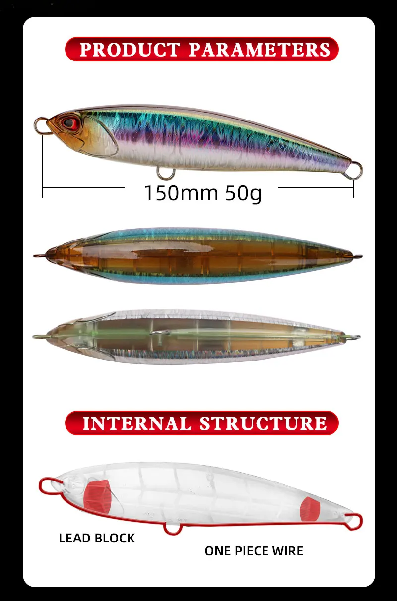 Le Fish-Señuelos de Pesca de lápiz grande, cebos duros, anzuelo VMC, atún, lubina, aparejos de pesca falsos, 150mm, 50g