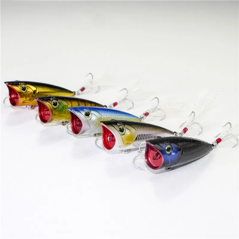 1. Anzuelos agudos afilados, anillos divididos resistentes y ojos 3D que llevan sus habilidades de captura de peces al siguiente nivel. Disponible en una gama de grandes colores, el Popper ofrece una acción única que los peces nunca han visto antes.