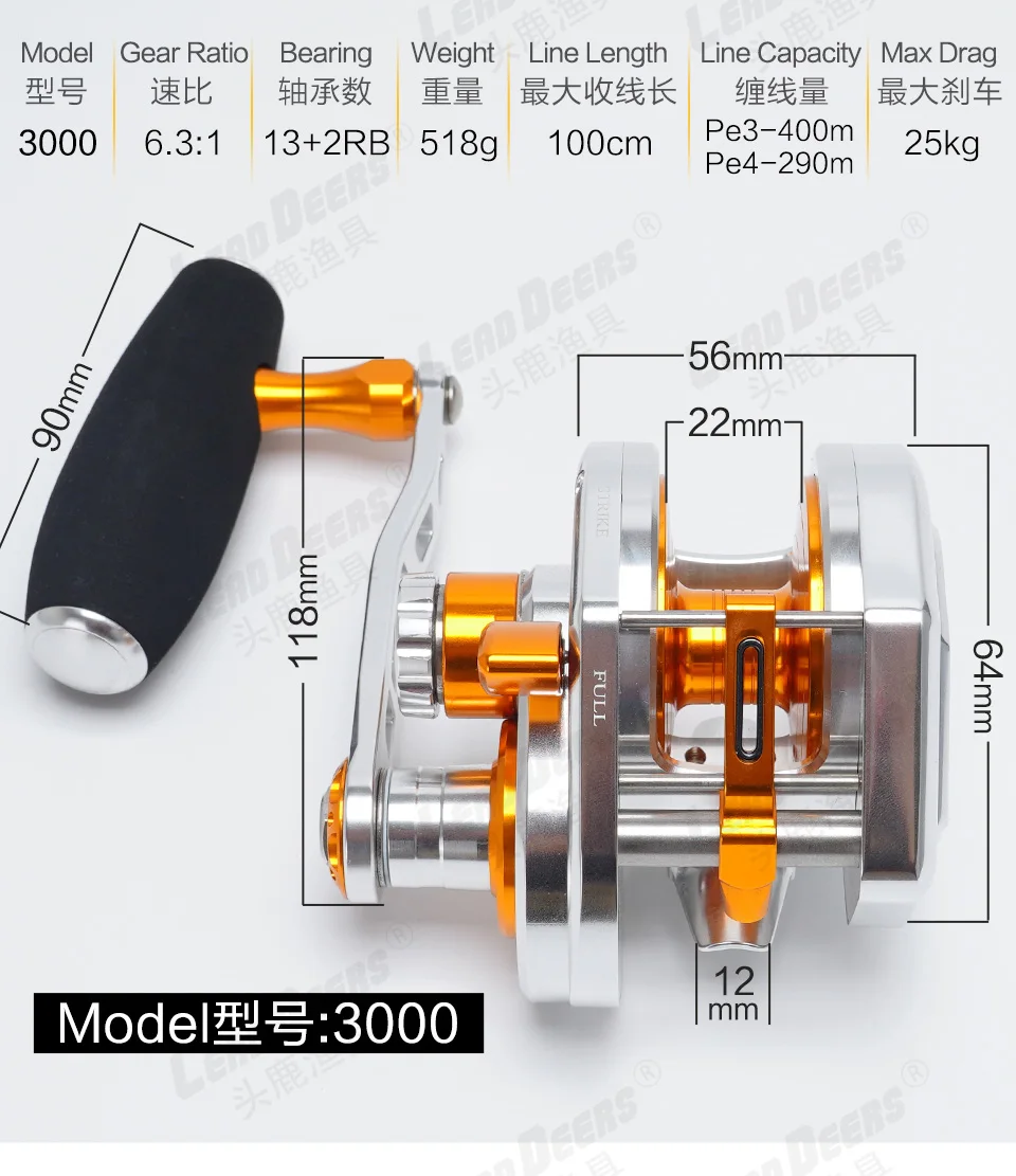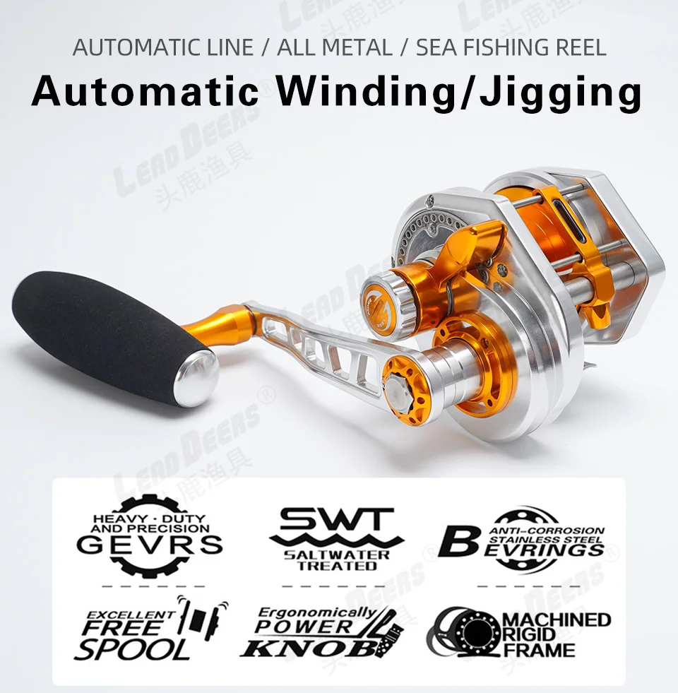LEADDEERS-carrete de pesca 15BB para agua salada, carrete de Jigging lento, arrastre máximo de 25KG, Radio de arrastre 6,3: 1