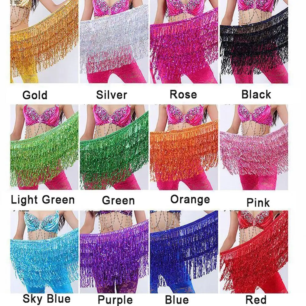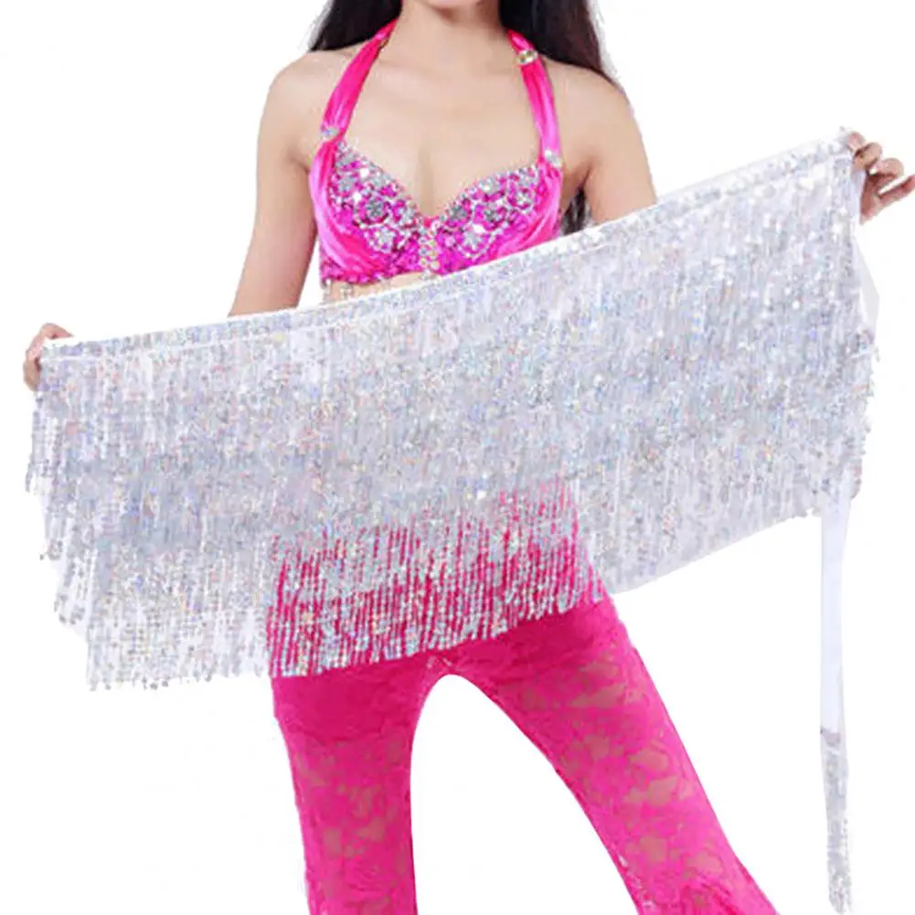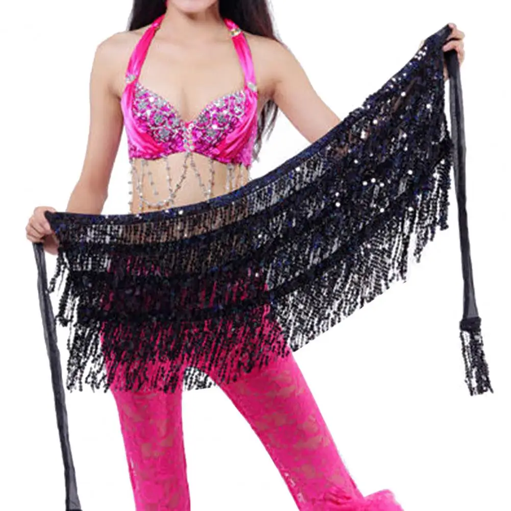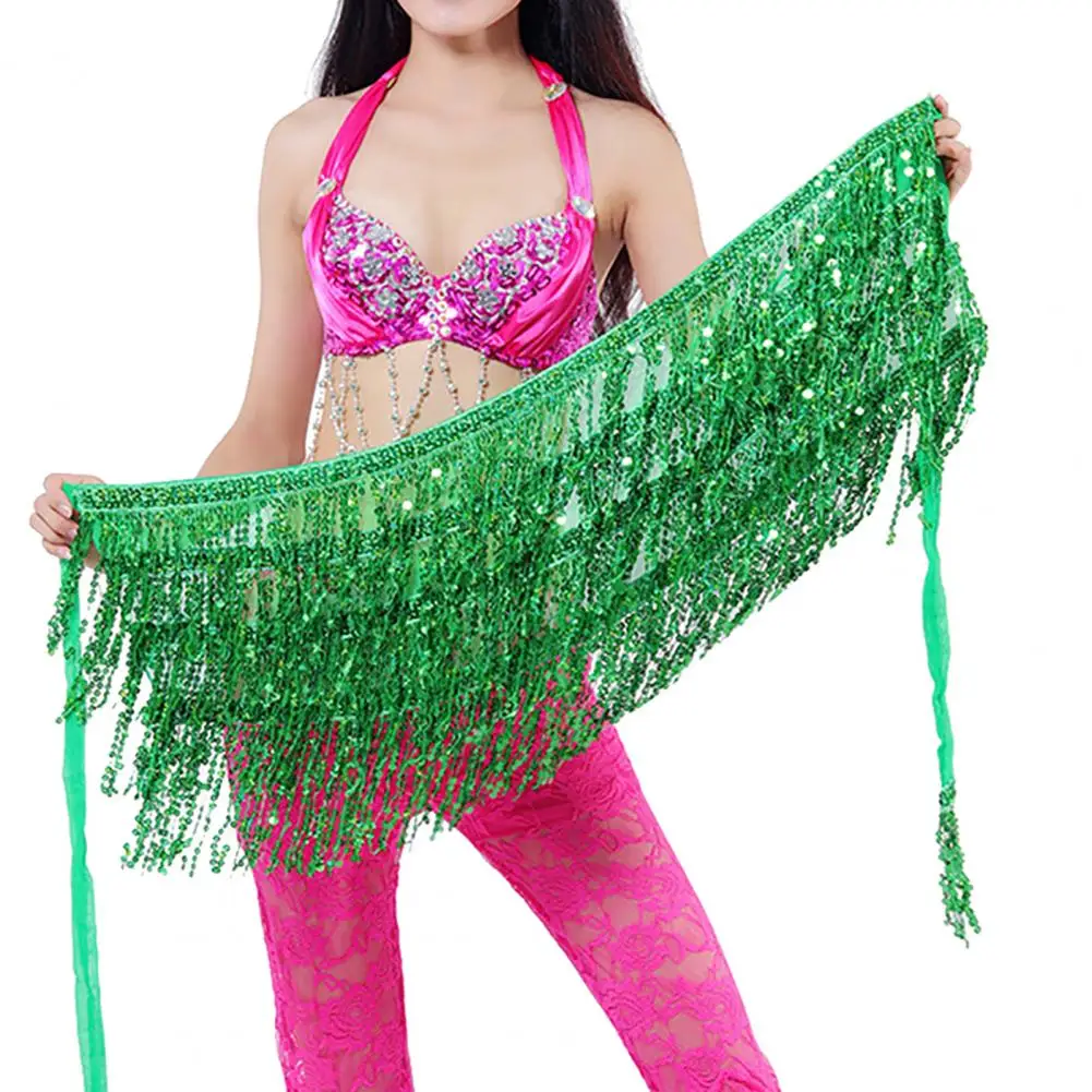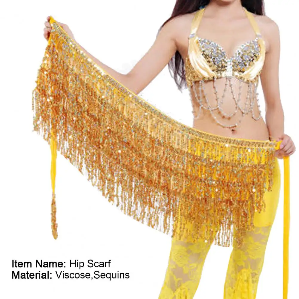 Falda para el vientre, decoración de lentejuelas, llamativa bufanda de cadera para danza del vientre de viscosa para danza del vientre