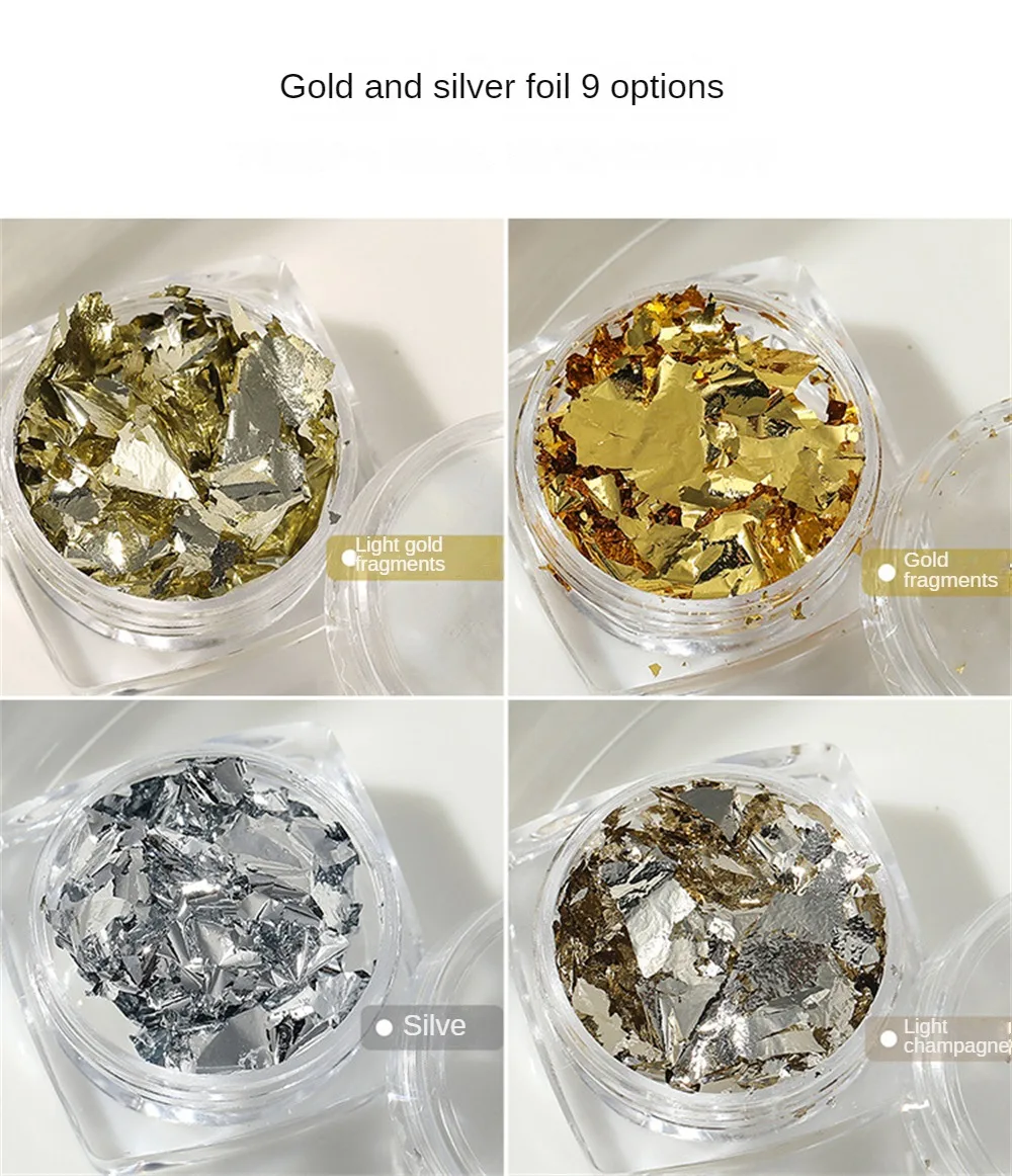 Copos de aluminio con purpurina 3D para uñas, 9 colores, para manicura, oro, plata, Irregular, decoración de uñas, amuletos de manicura