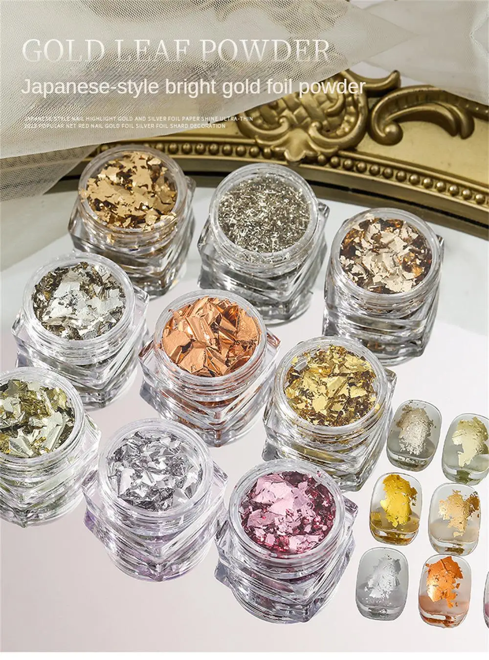 Nombre del producto: polvo de lámina de oro brillante de estilo japonés
