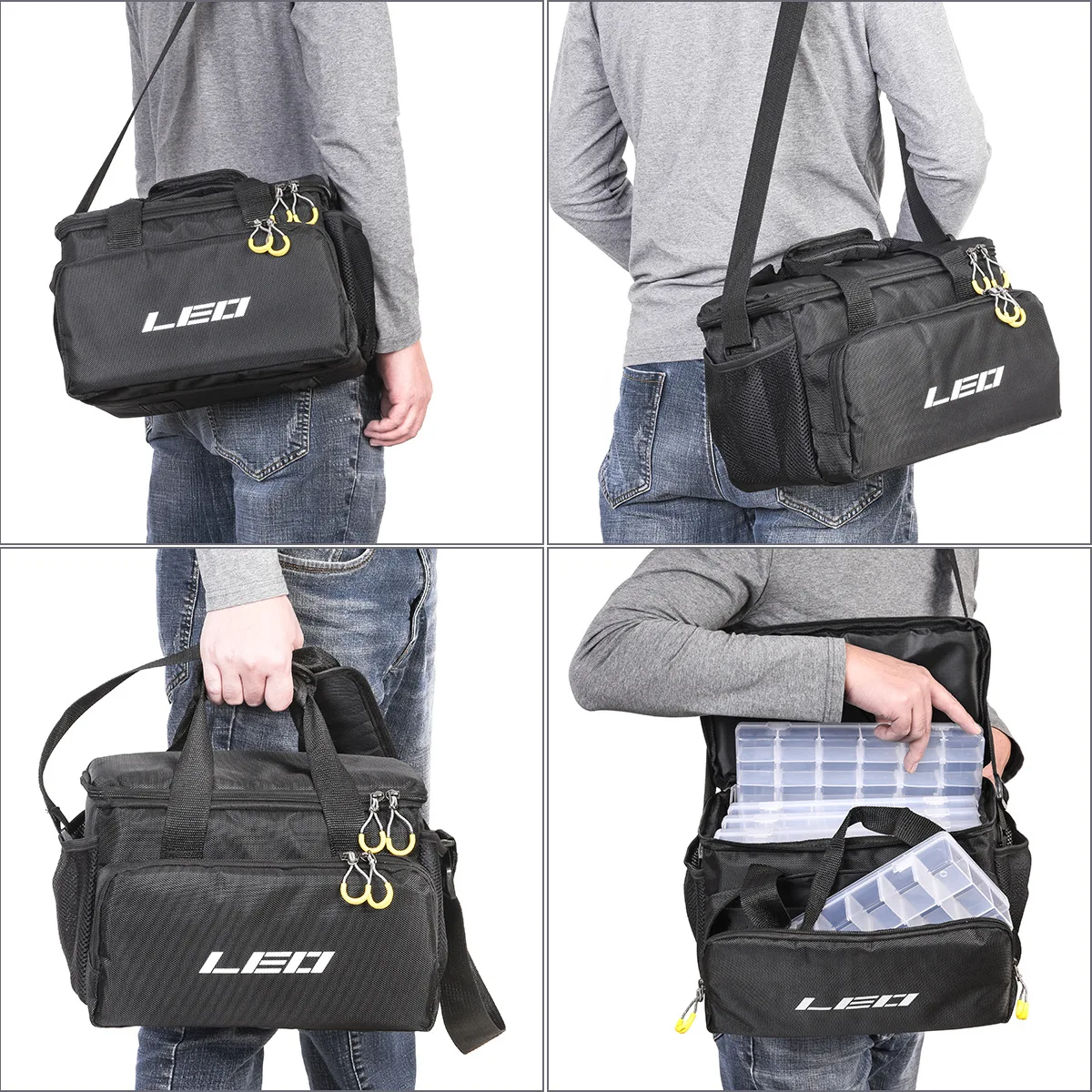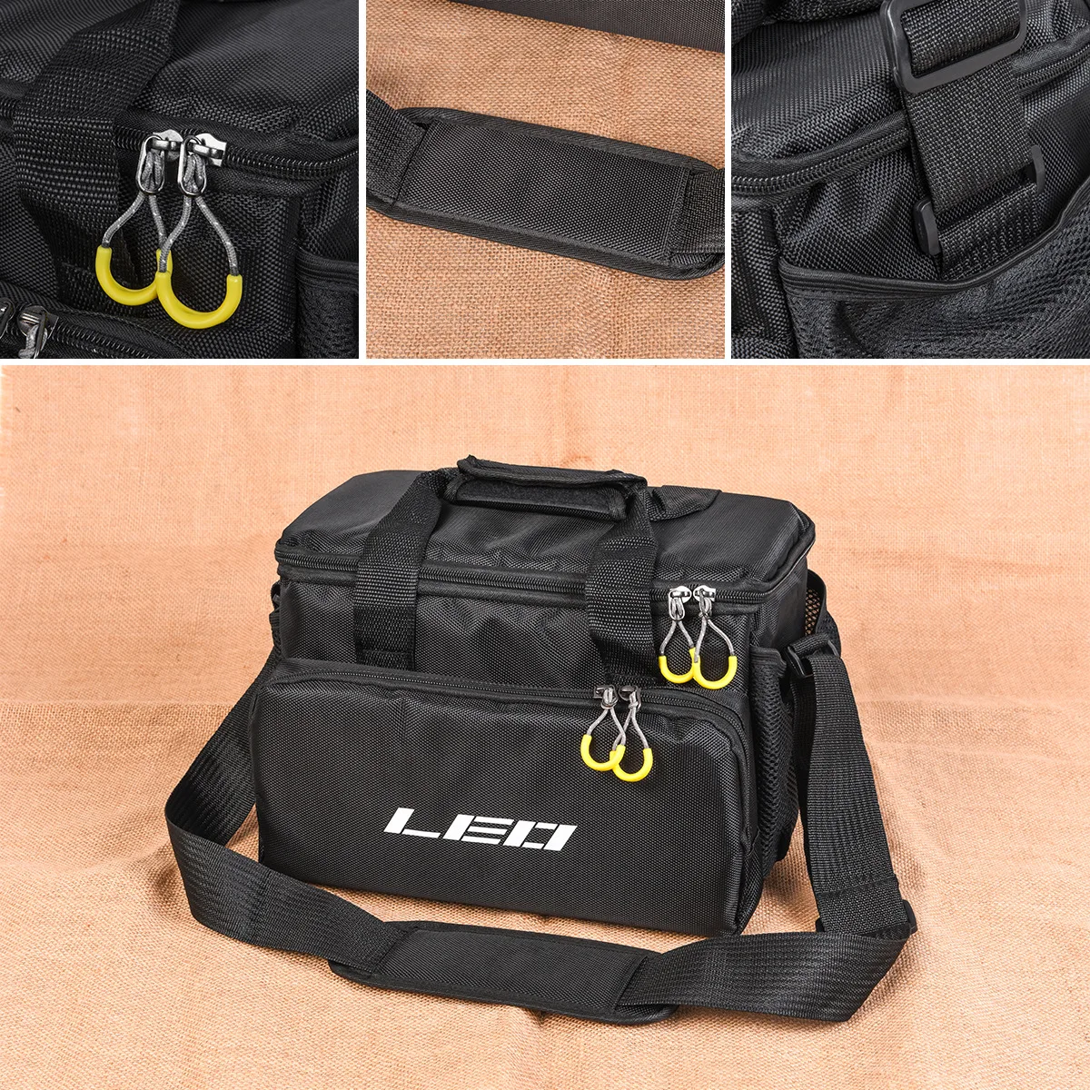 LEO-Bolsa de aparejos de pesca, bandolera de pesca, carrete de señuelo de pesca portátil, estuche de almacenamiento de línea, bolso multifuncional para hombre, mochila