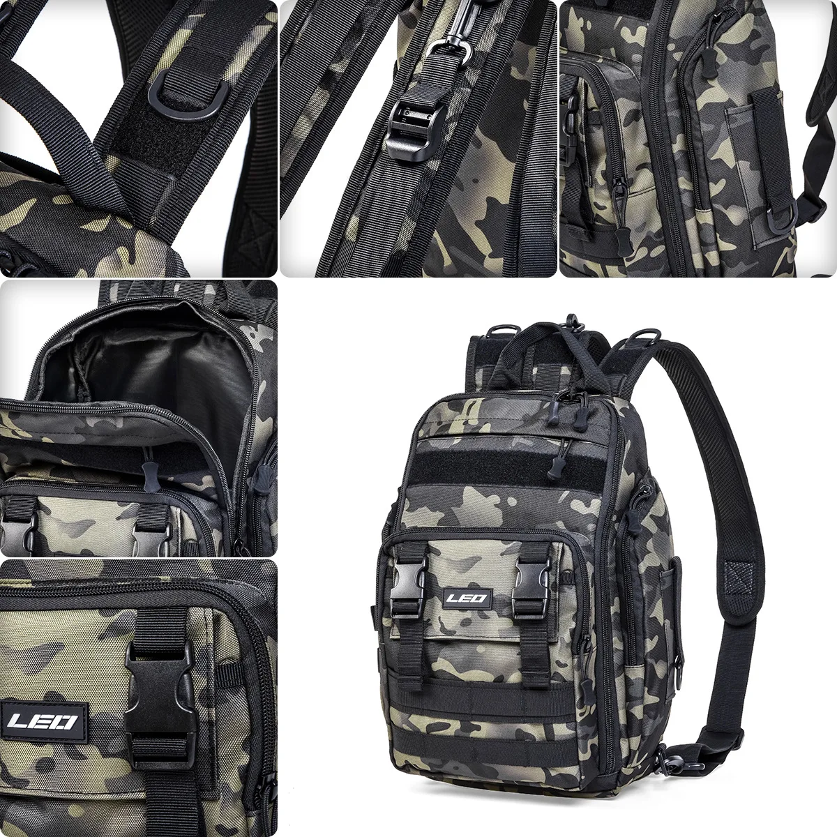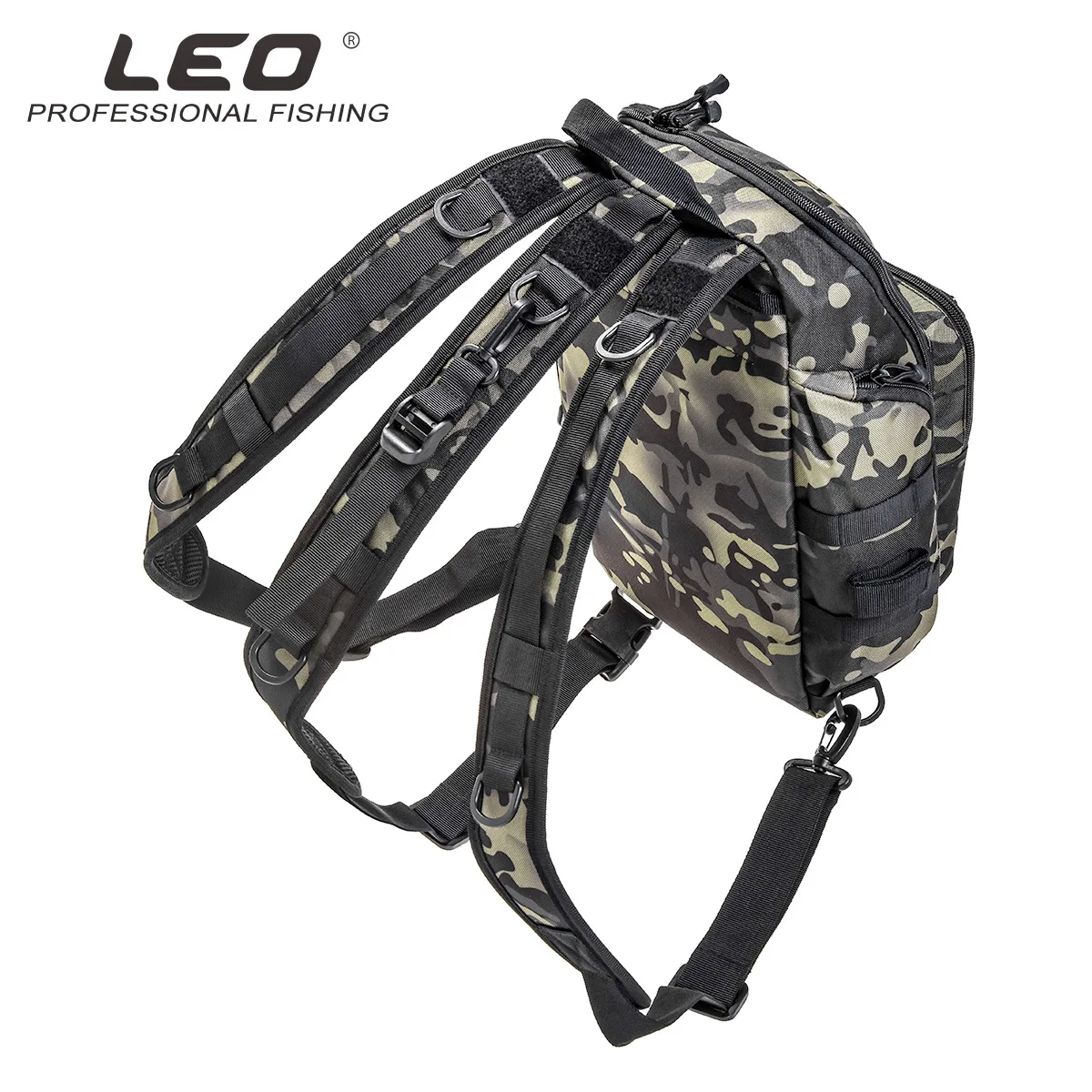 Dos correas de hombro desmontables, ajustables y desmontables izquierda/derecha. Esta mochila de pesca se puede utilizar como bandolera, mochila, bolso de mano, bolsa de pecho, bolsa de aparejos de pesca, bolsa de viaje, etc. Dos cinturones de caña para sujetar sus cañas.
