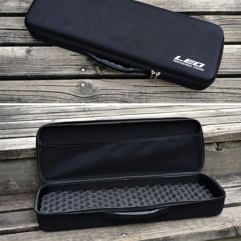 Características: 1. Hecho de tela combinada EVA de alta calidad, resistente, duradera y de larga vida útil. 2. Costura sólida y artesanía delicada, resistente al desgarro y al desgaste. 3. Gran capacidad, lo suficientemente grande como para almacenar tus cosas. 4. Equipado con esponja, mejor para proteger su equipo de pesca. 5. Gran accesorio para la pesca. Especificación: Condición: 100% nuevo Tipo de artículo: Bolsa de pesca Material: tejido combinado EVA Color: Negro Peso: 415G Tamaño: Aprox. 54cm x 19cm x 9cm Lista de paquetes: 1 x bolsa de pesca 1 x esponja
