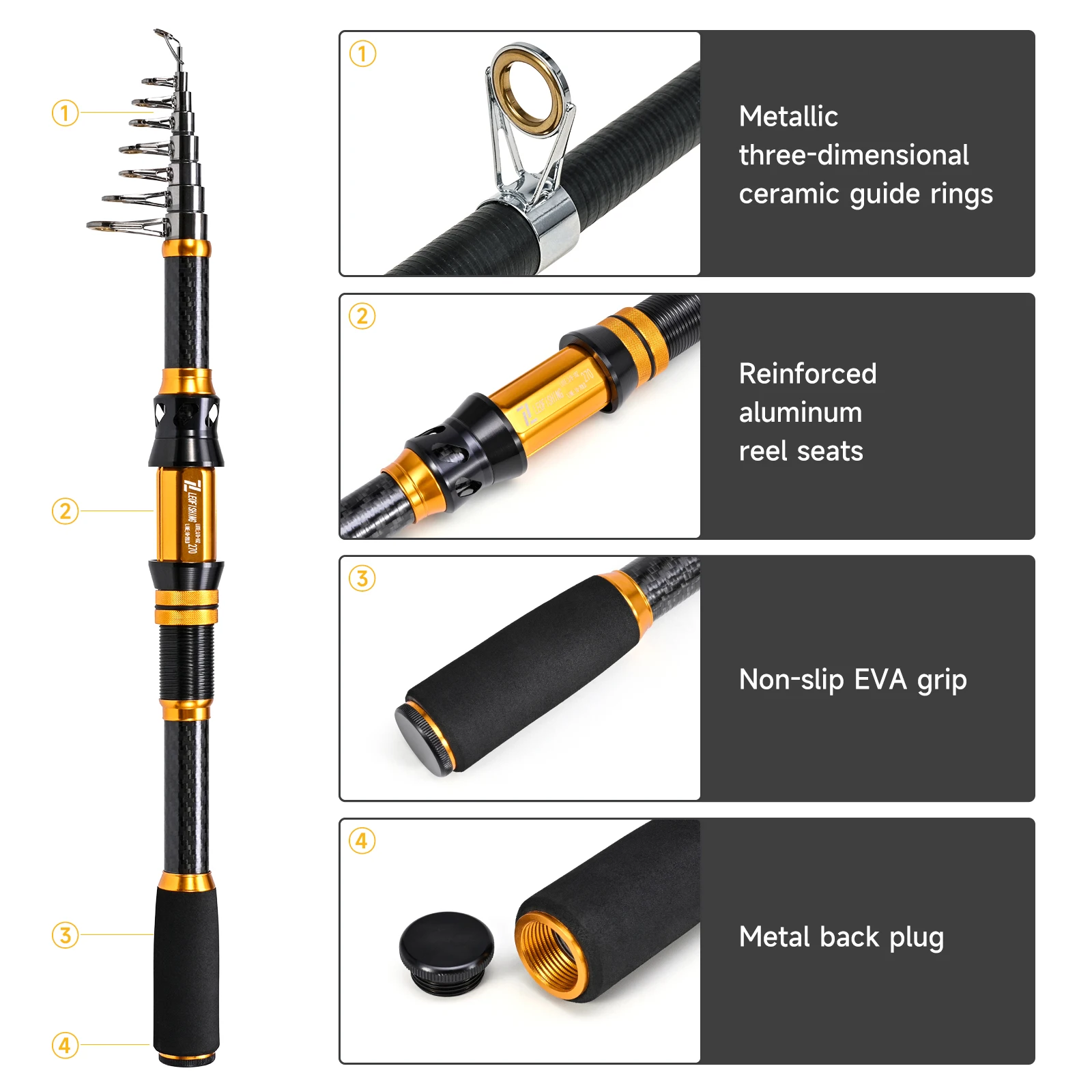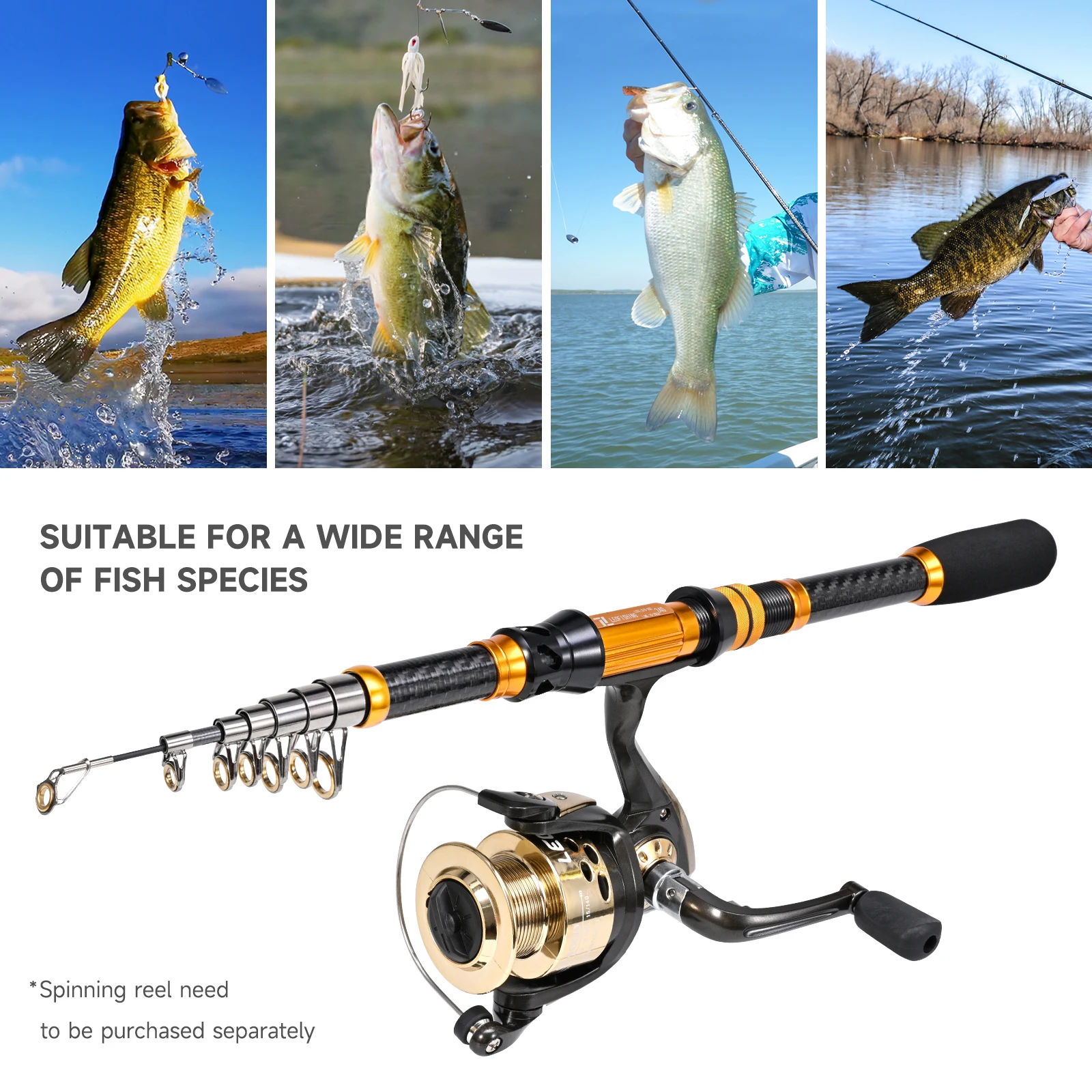 Con un diseño telescópico, esta caña es fácil de transportar y almacenar, lo que la hace perfecta tanto para viajes como para almacenamiento.