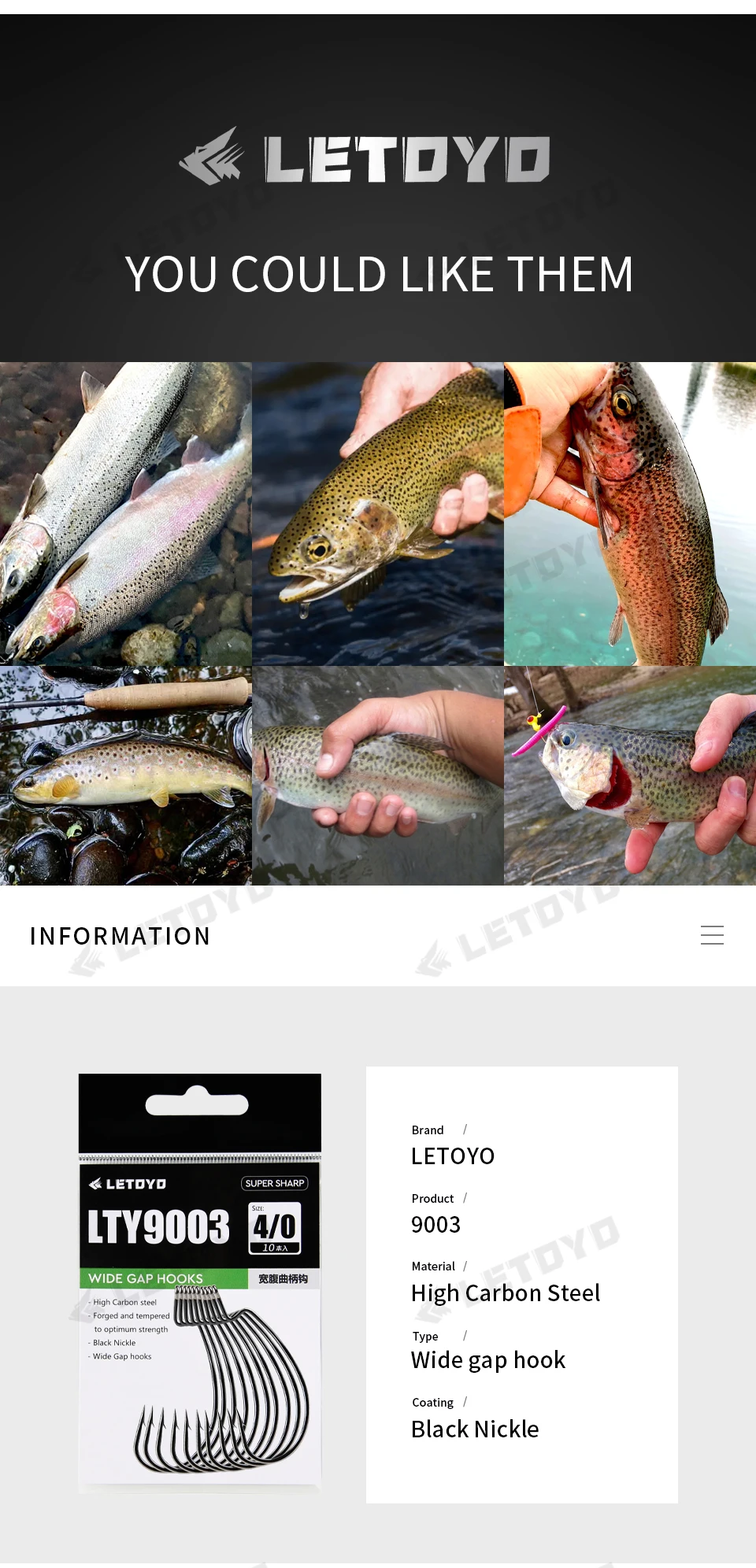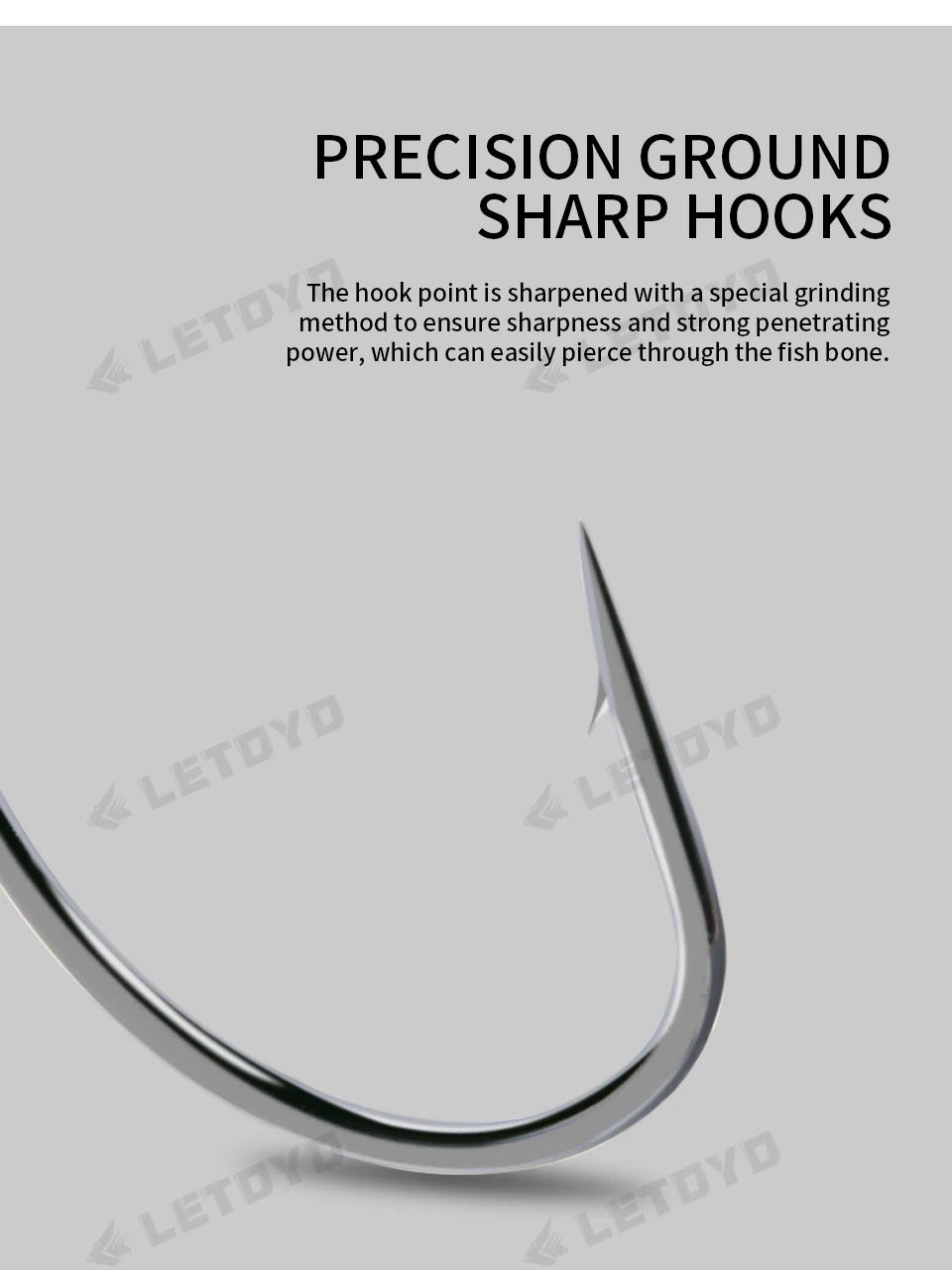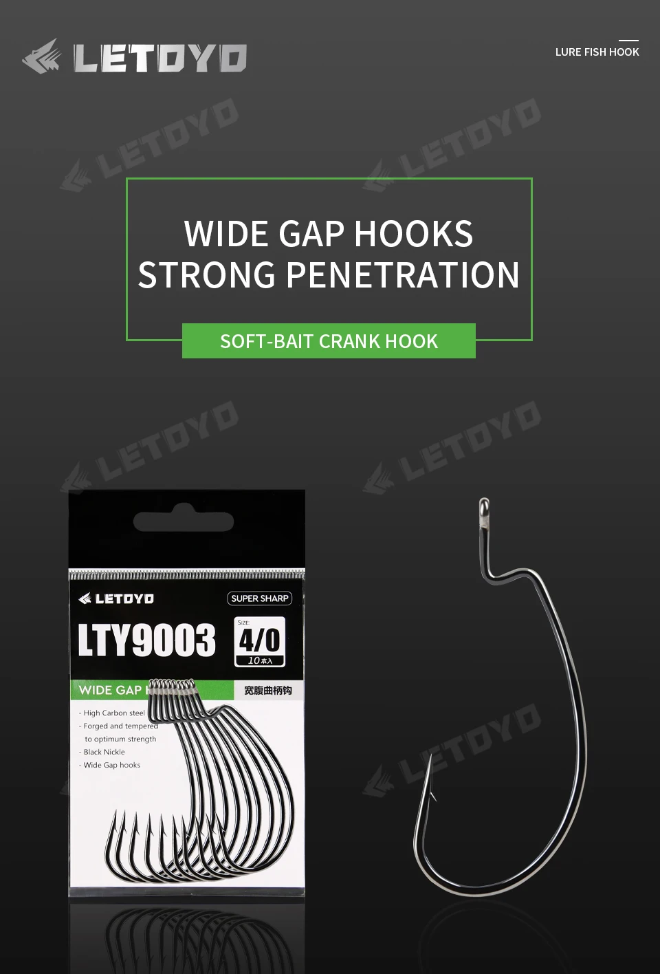 LETOYO 10 piezas 1#-4# anzuelo de pesca de ancho, anzuelo de acero con alto contenido de carbono, aguja fuerte y afilada, señuelo de pesca suave, accesorios de aparejos de pesca