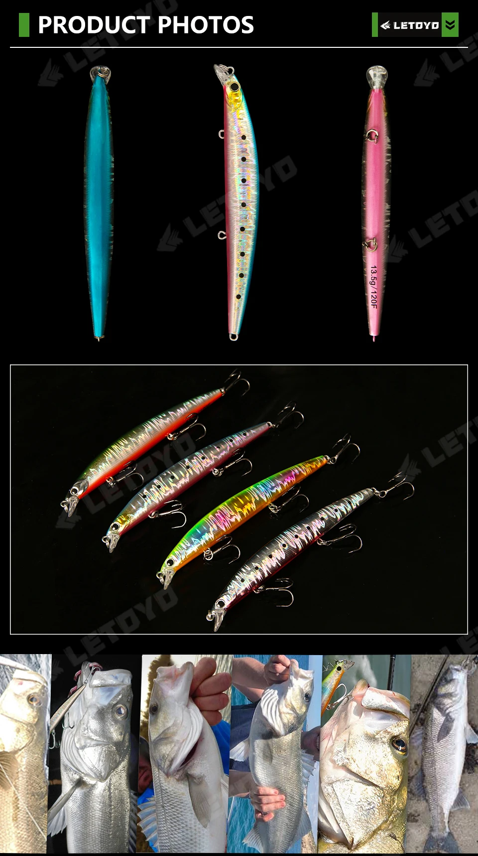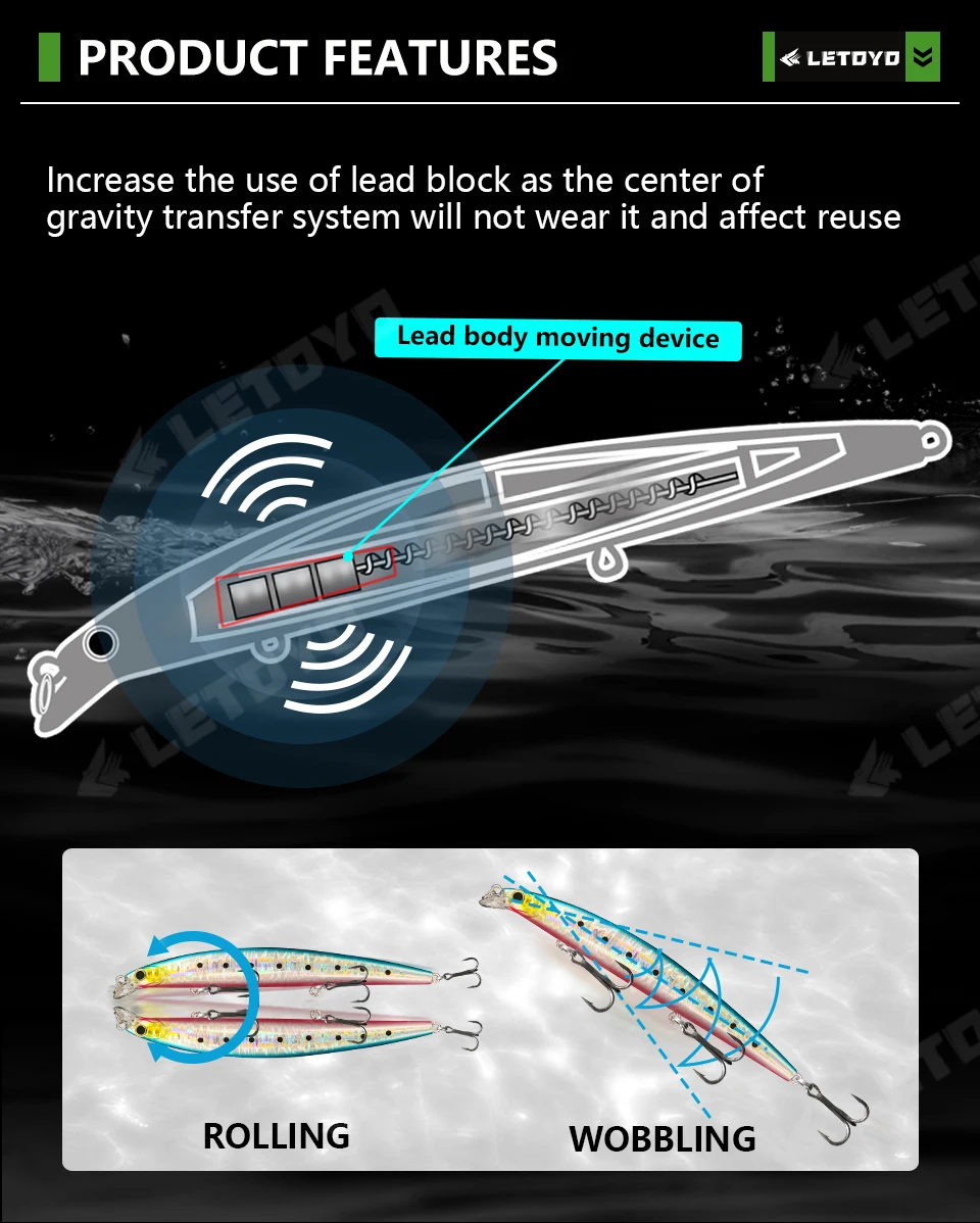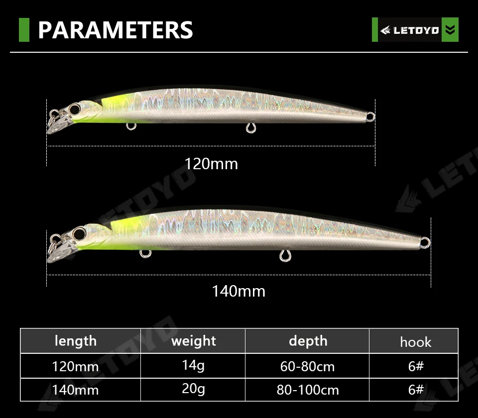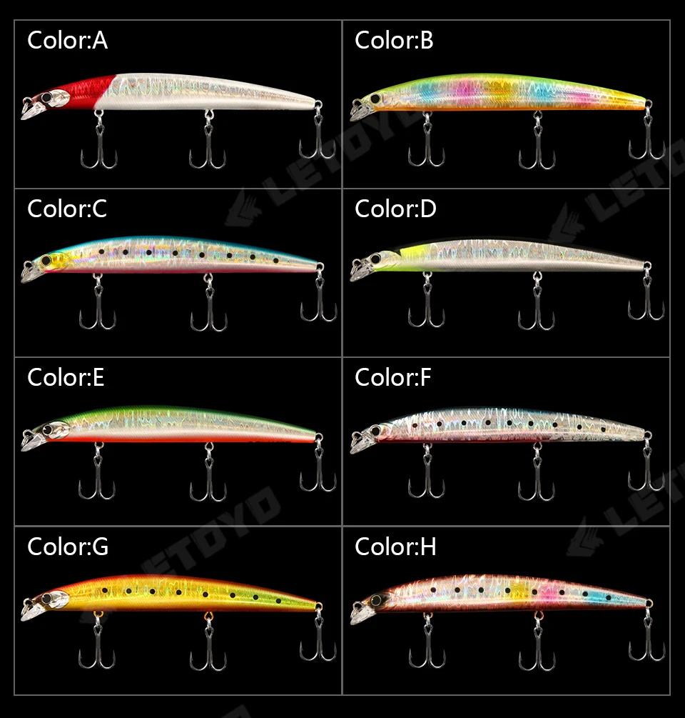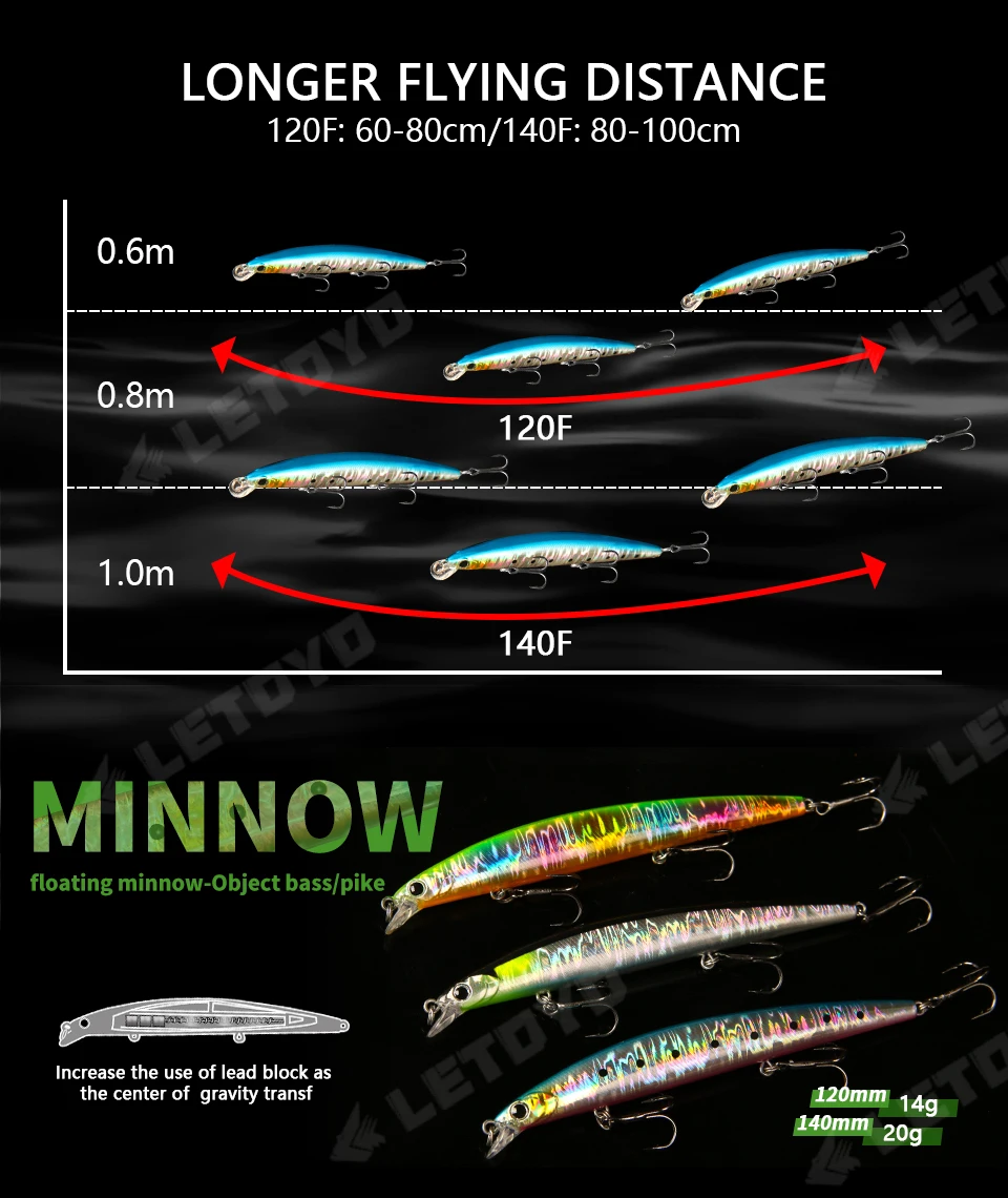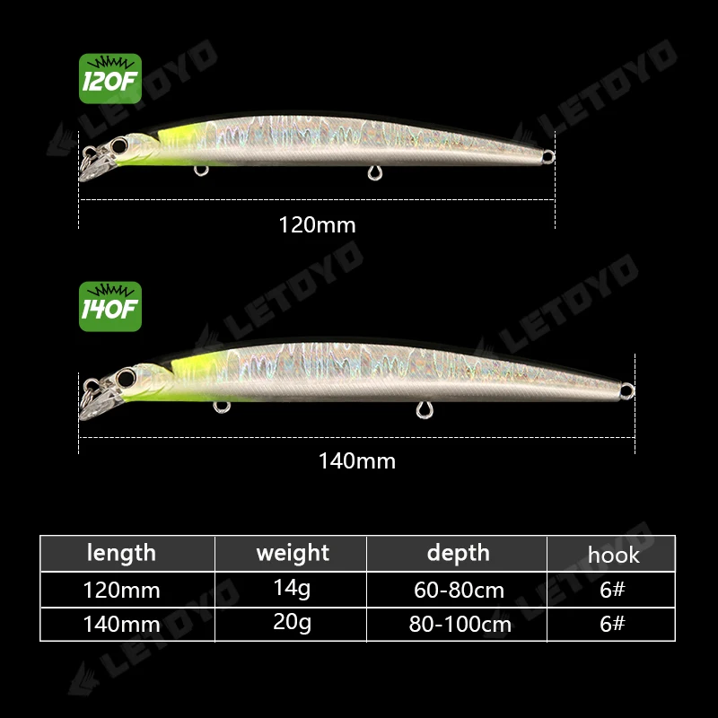 LETOYO 120mm 140mm hundimiento Jerkbait Minnow Wobbler cebo Artificial Señuelos de pesca de agua dulce para Lucio