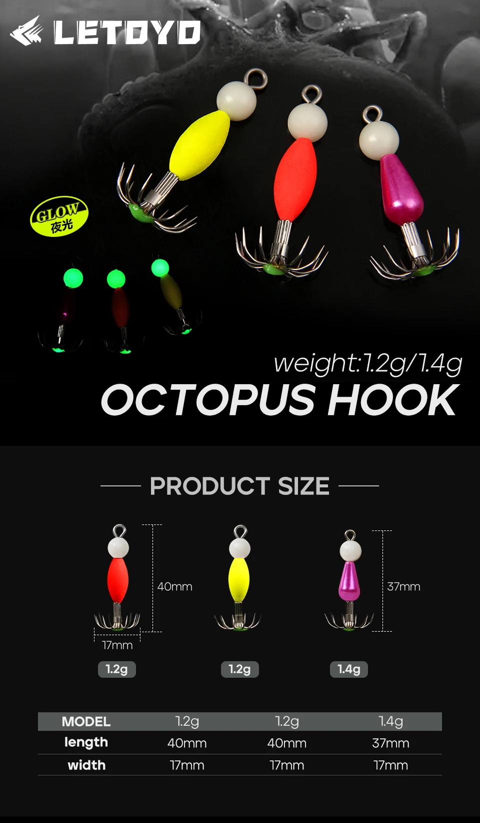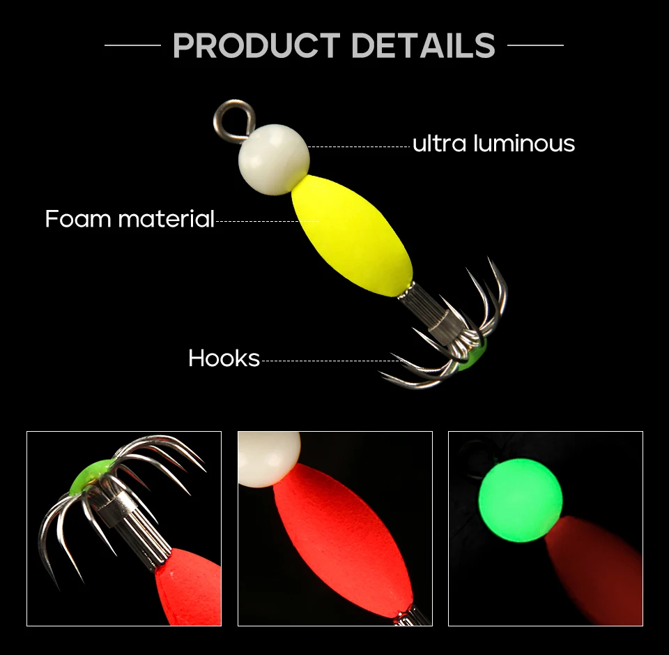 LETOYO 1,2g anzuelo flotante de pulpo luminoso calamar Jig señuelo de pesca cebo Artificial para Webfoot pulpo pesca señuelo de pesca de mar