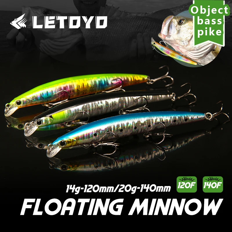 LETOYO 140F 120F pececillo flotante Jerkbait señuelo Wobbler cebos duros cebo Artificial lubina Pike atún Señuelos de pesca de agua salada