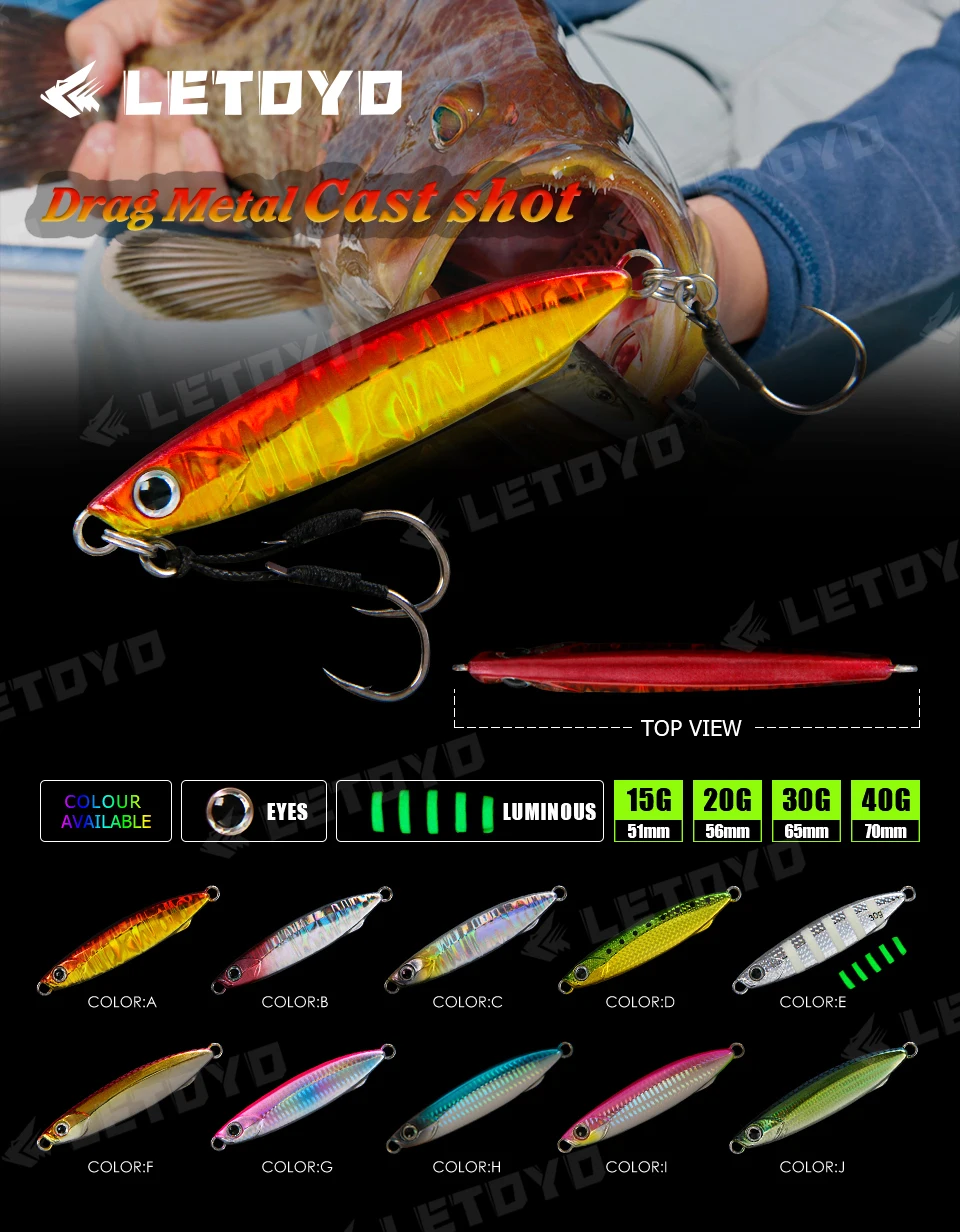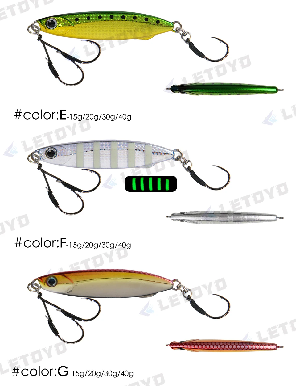 LETOYO 15g/20g/30g/40g Shore Jig Metal Jigging agua salada mar pesca curricán pesca señuelo fundición Artificial cebo duro para lubina
