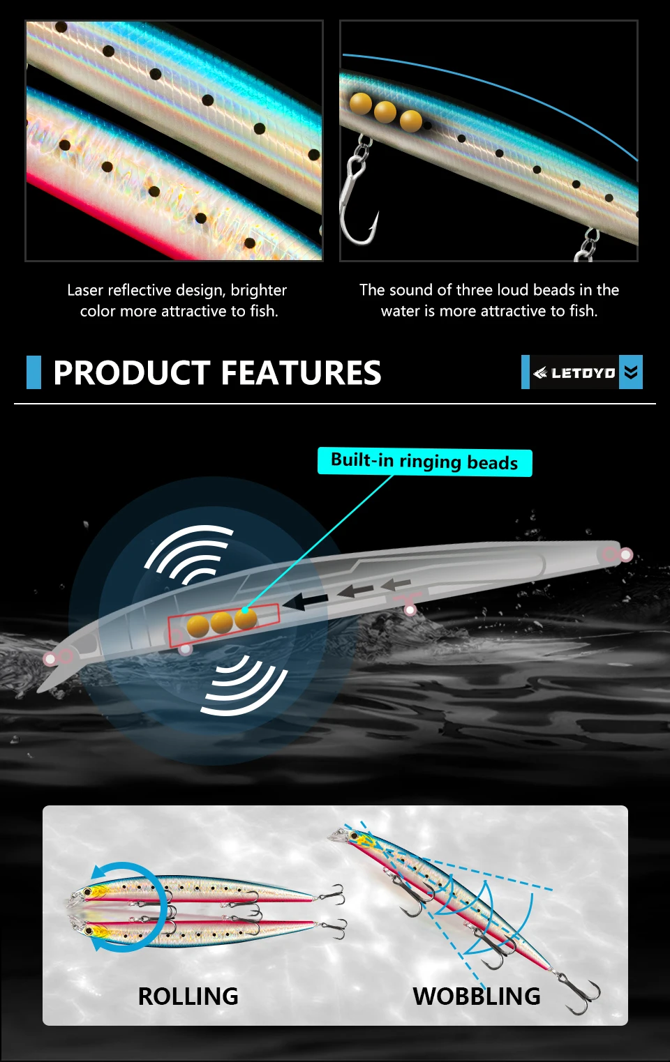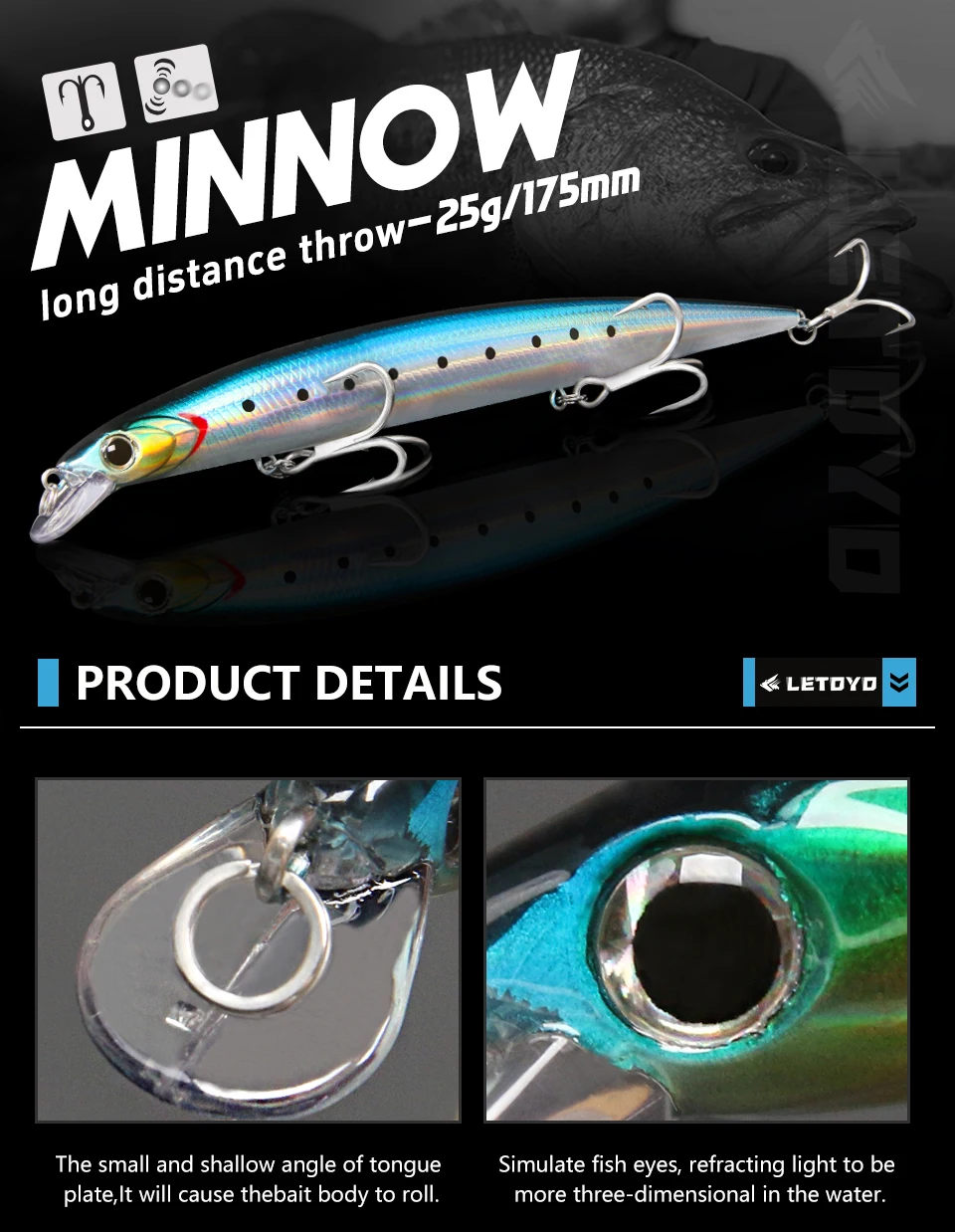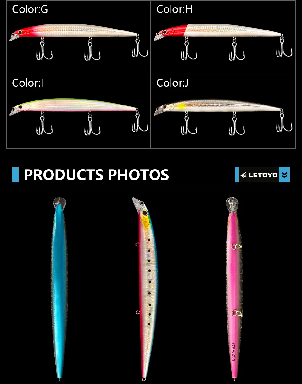 LETOYO 175mm pececillo flotante Jerkbait señuelo Wobbler agua salada lubina cebos duros cebo Artificial Lucio Señuelos de pesca