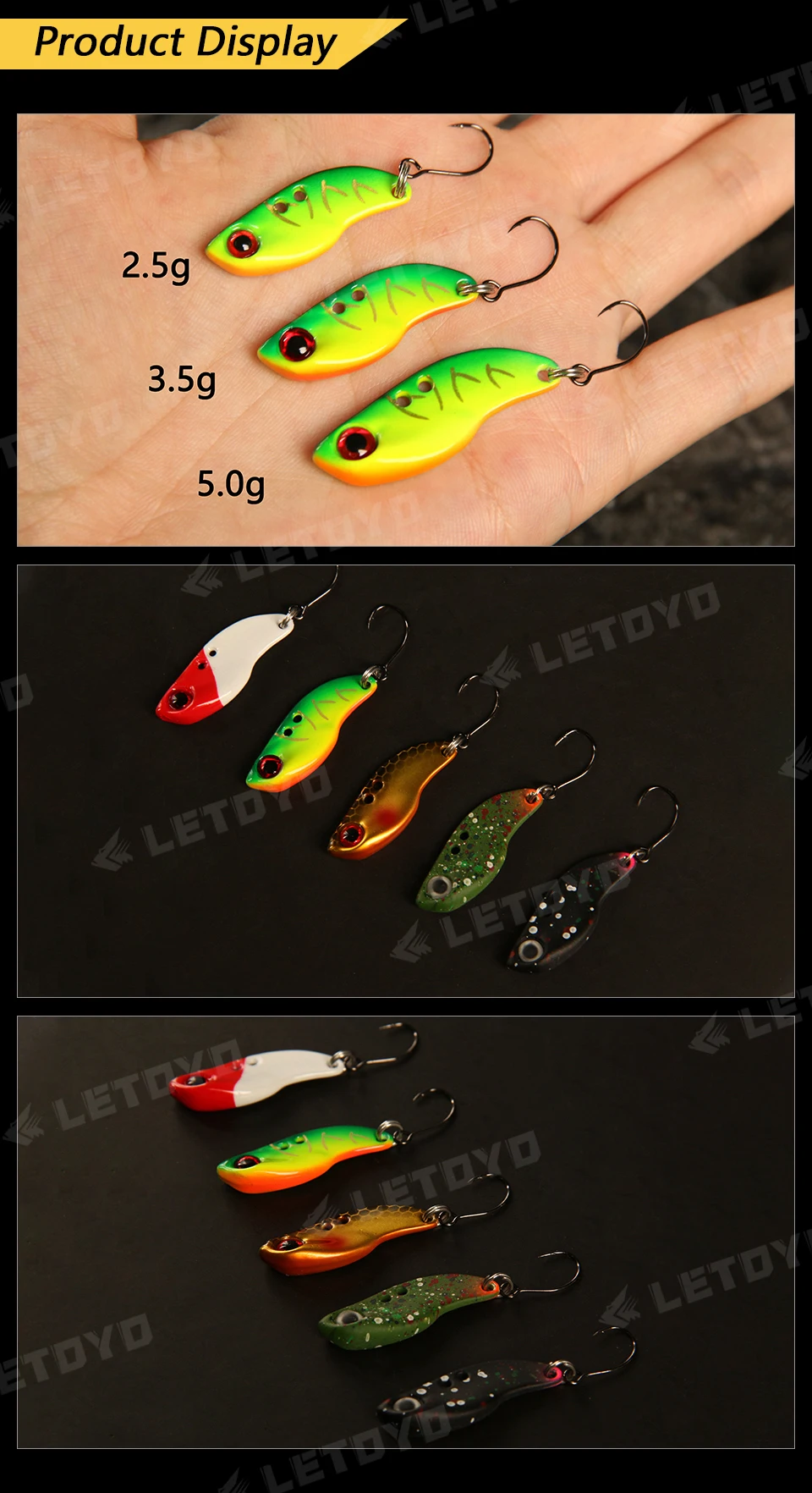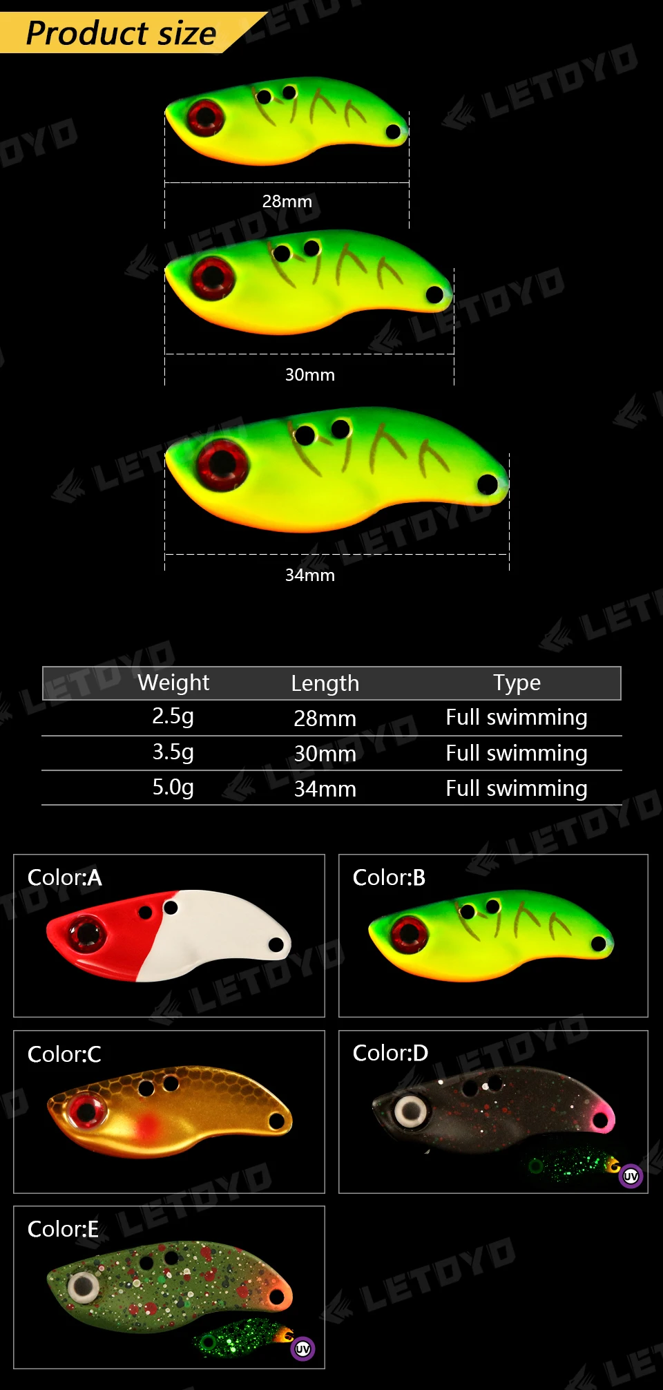 LETOYO 2,5-5g UV VIB señuelo hundido Micro vibrador Artificial VIB cebo duro Mini vibración Señuelos de Pesca para Pesca de trucha