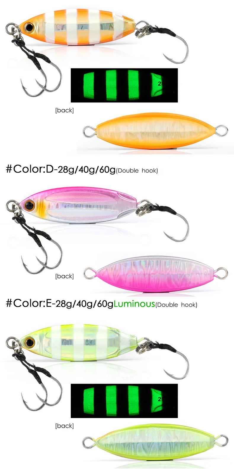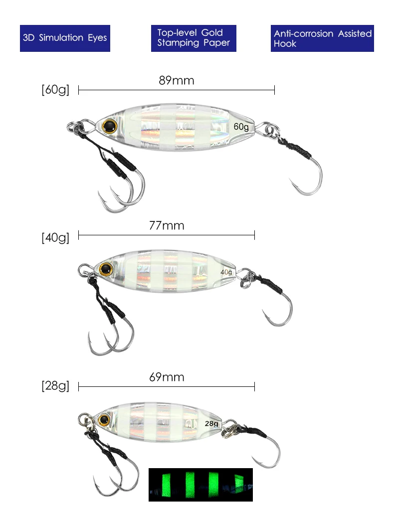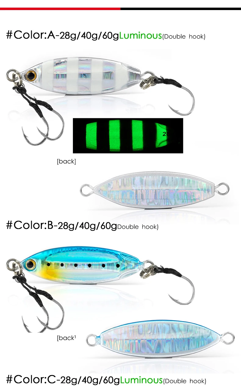 LETOYO 28g 40g 60g Glow Metal Jigging Señuelos de Pesca lenta Fishing Jig Bait para la pesca en el mar,señuelo de pesca de Metal jigging pesca jigs de pesca señuelos de pesca mar spinning jigs de pesca de mar slow