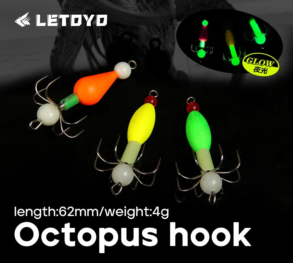 LETOYO 2,8g anzuelo flotante de pulpo luminoso calamar Jig señuelo de pesca cebo Artificial para Webfoot pulpo pesca señuelo de pesca de mar