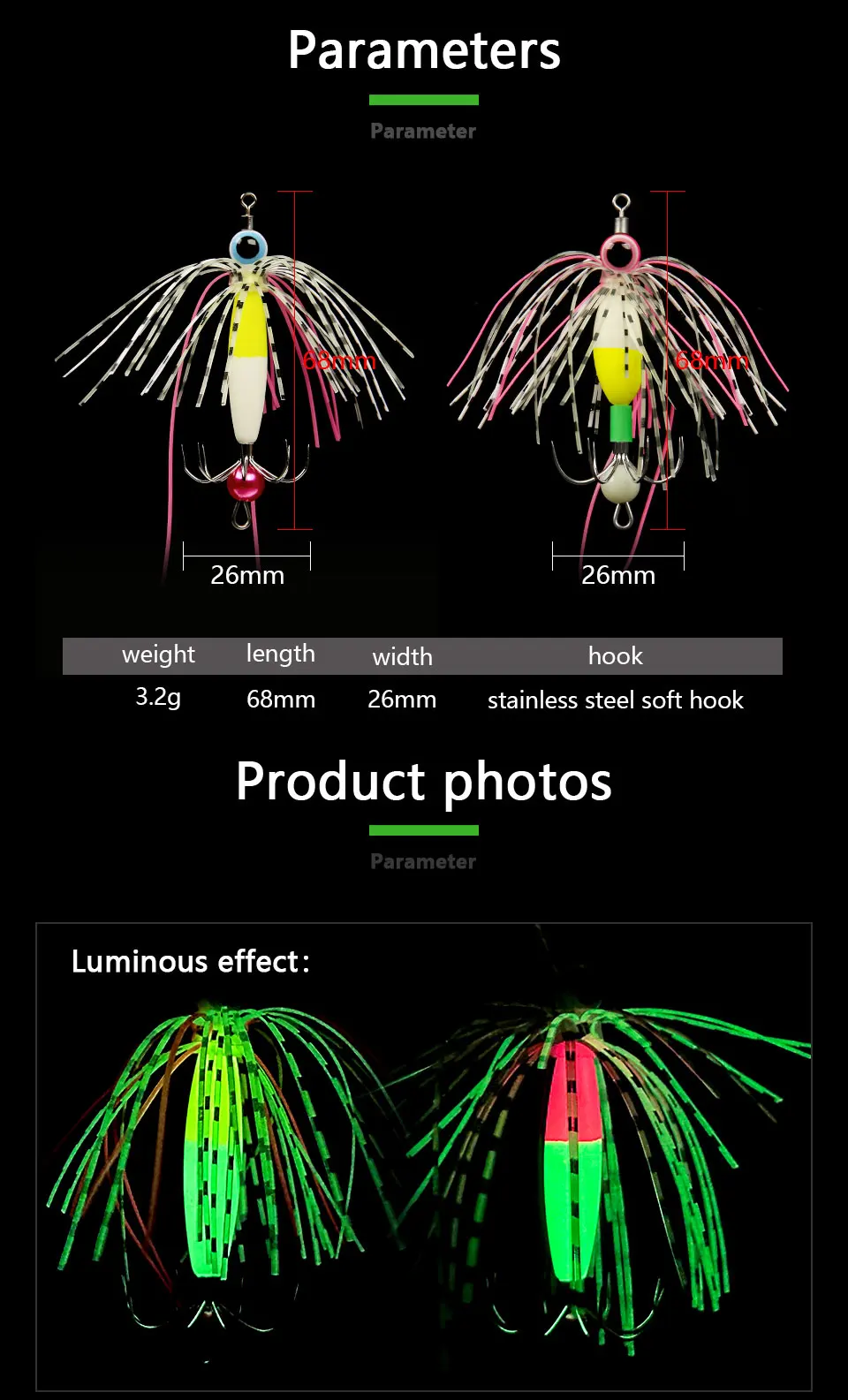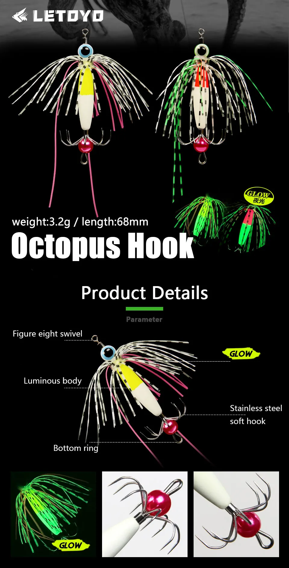 LETOYO 3,2g anzuelo flotante de pulpo luminoso calamar Jig señuelo de pesca cebo Artificial para Webfoot pulpo pesca señuelo de pesca de mar
