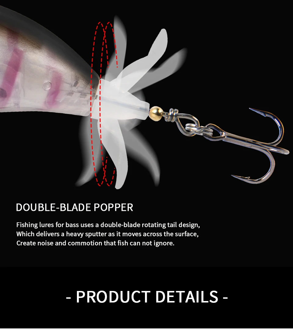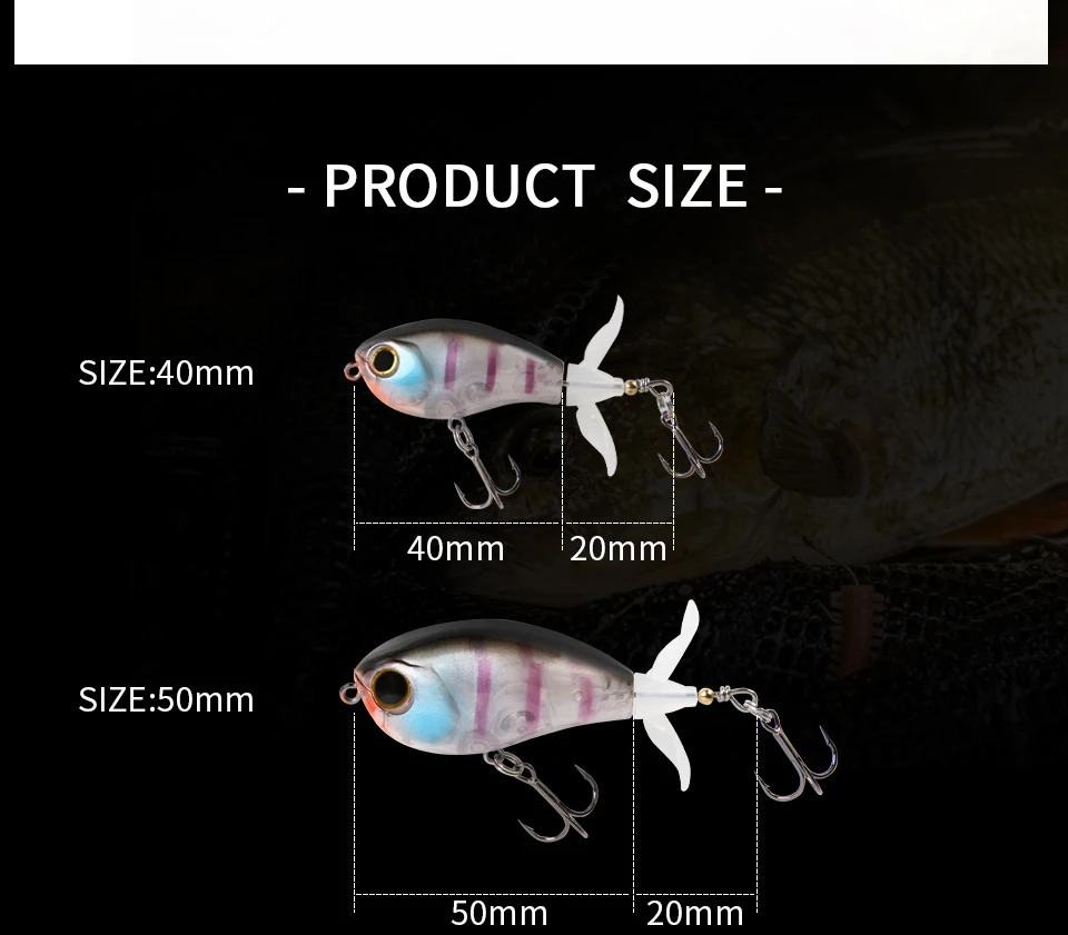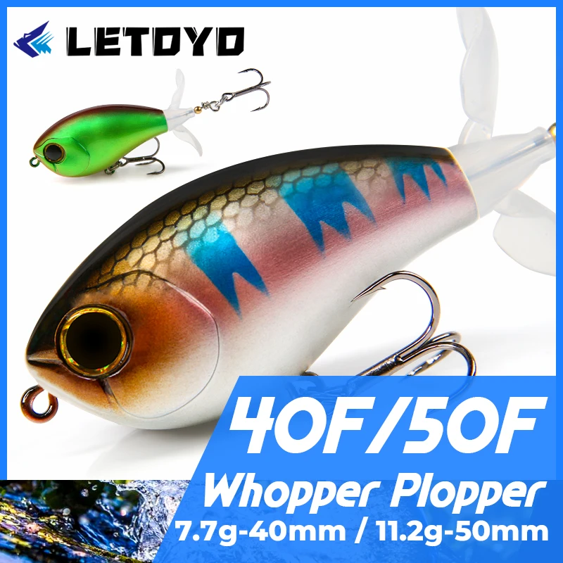 LETOYO 40mm 50mm Topwater Whopper Popper giratorio doble hélice cola cebo Artificial para lubina Señuelos de Pesca