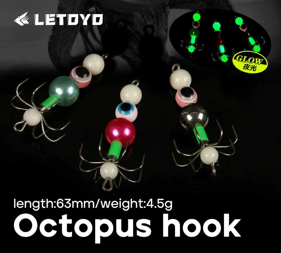 LETOYO 4,5g anzuelo flotante de pulpo luminoso calamar Jig señuelo de pesca cebo Artificial para Webfoot pulpo pesca señuelo de pesca de mar
