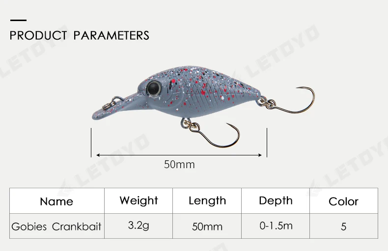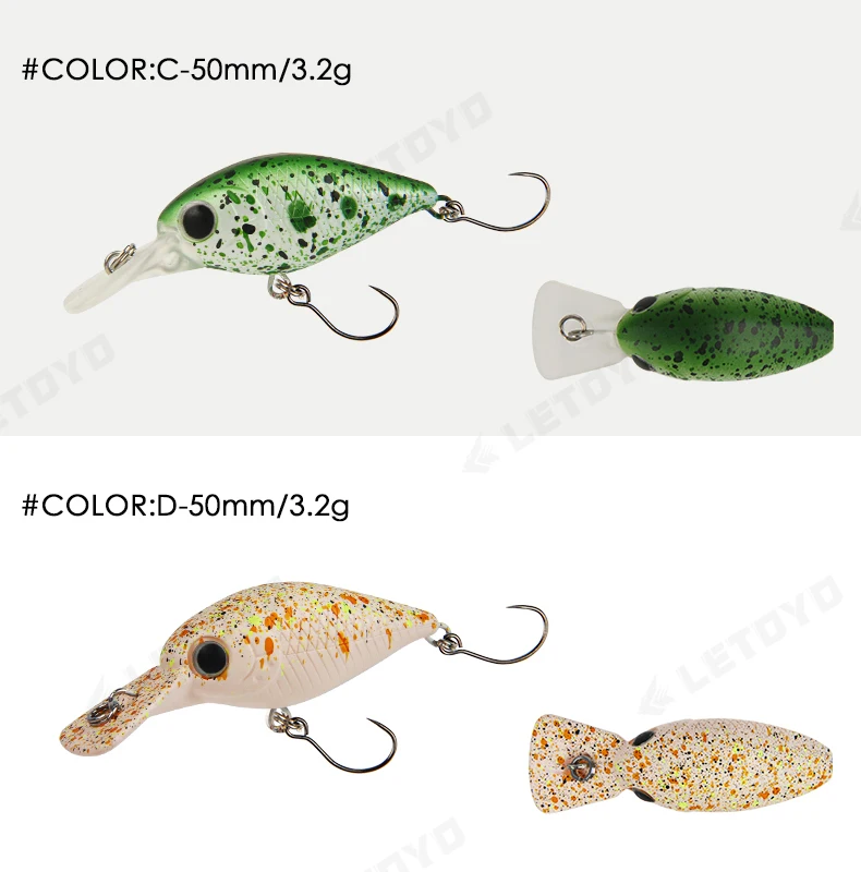LETOYO 50mm 3,2g mini manivela 0-1,5 m de profundidad cebo duro alta calidad Crankbait Wobblers para trucha lubina Señuelos de pesca aparejos