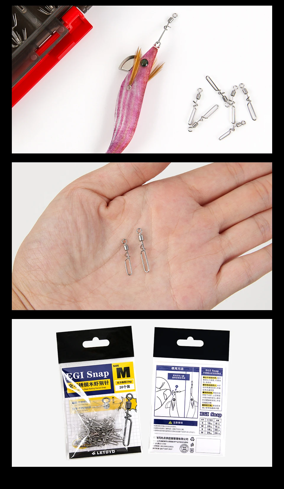 LETOYO 6-20 piezas calamar Egi Snap giratorio de acero inoxidable completo para 1,5 # -4.0 # Plantillas de pesca de sepia, señuelo egi, plantilla de calamar