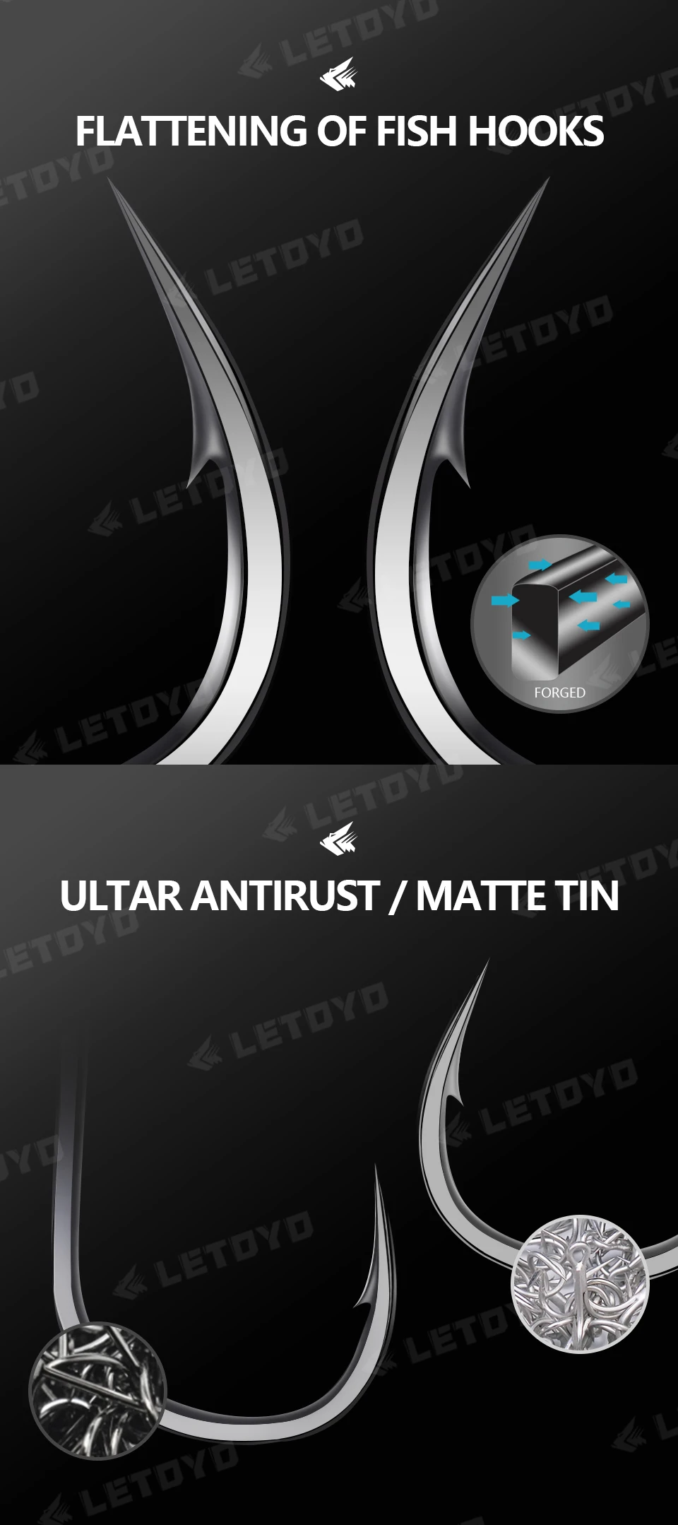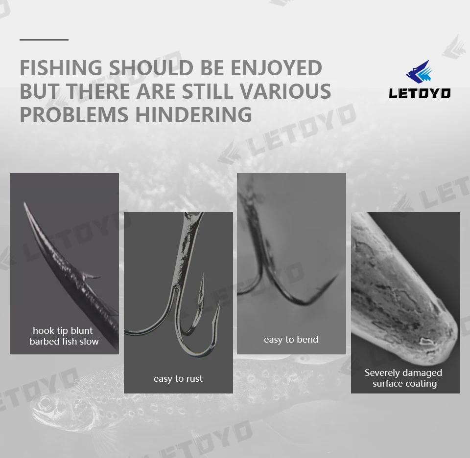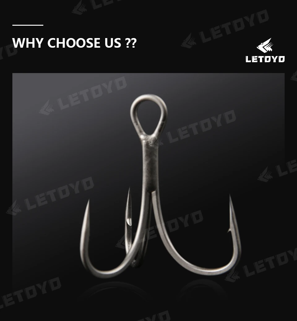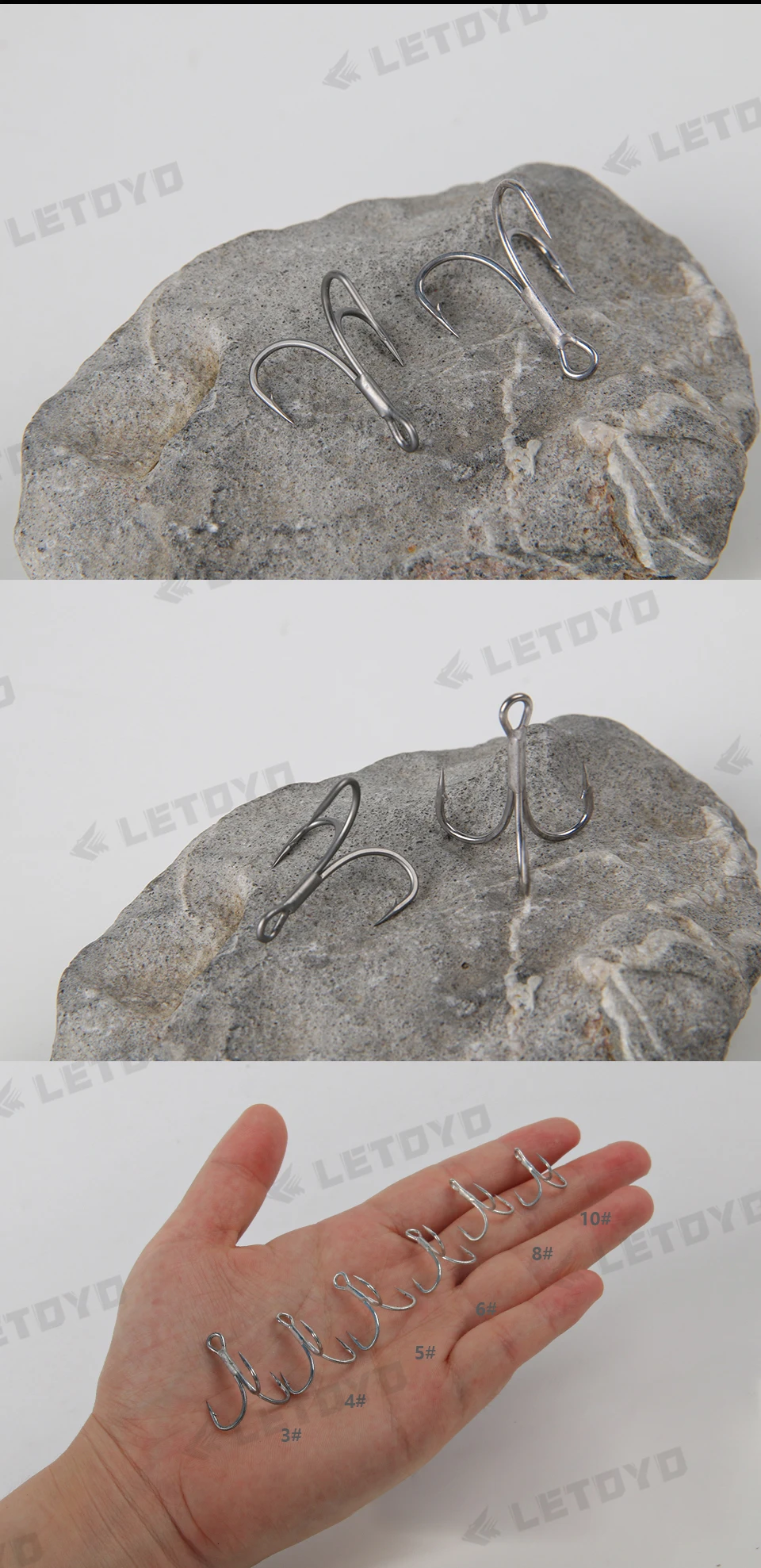 LETOYO-anzuelos triples con púas de espacio ancho, anzuelos triples de acero de carbono alto, anzuelos de pesca de estaño mate en señuelos duros para Lucio, lubina, perca