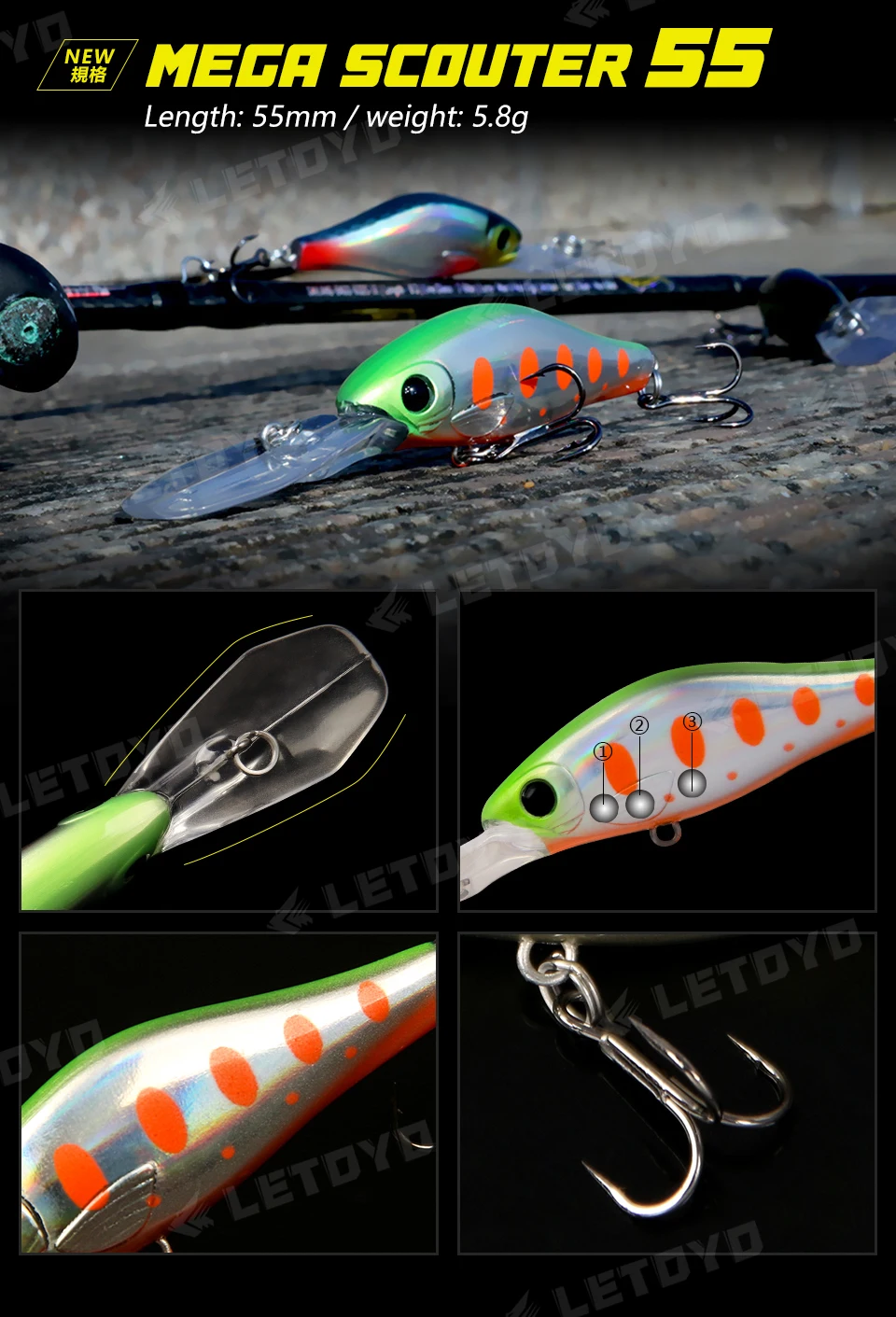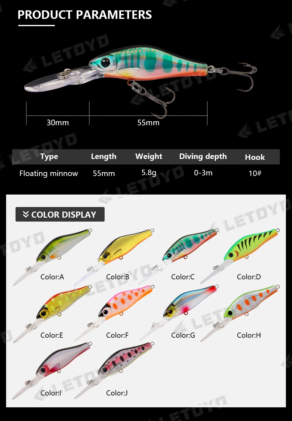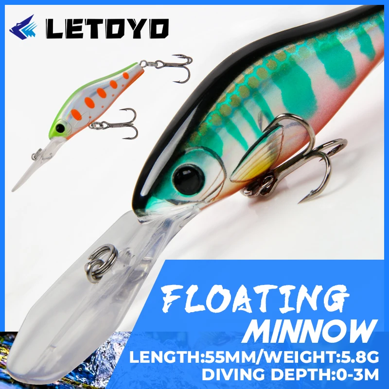 LETOYO-Cebo duro Artificial flotante minnow, señuelo de pesca de agua dulce, Wobblers para trucha y perca, 55mm, 5,8g, 0-3m