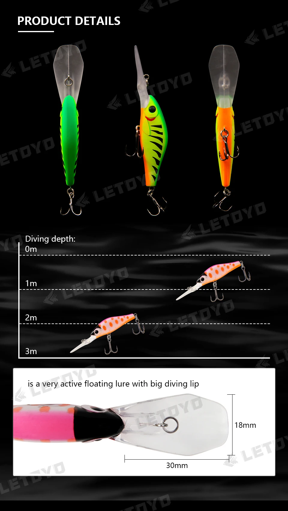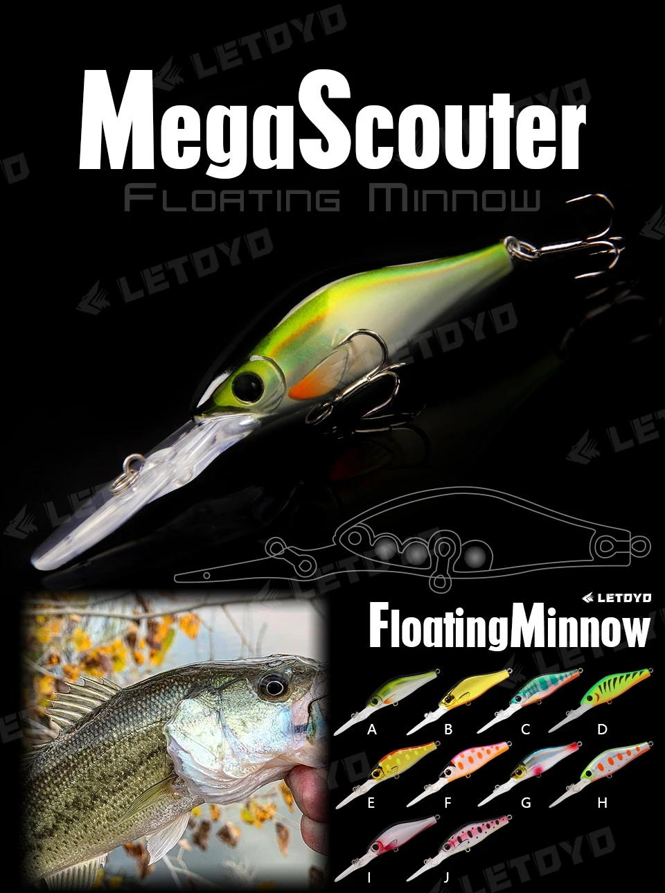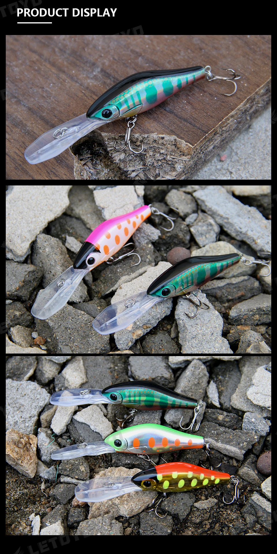 LETOYO-Cebo duro Artificial flotante minnow, señuelo de pesca de agua dulce, Wobblers para trucha y perca, 55mm, 5,8g, 0-3m