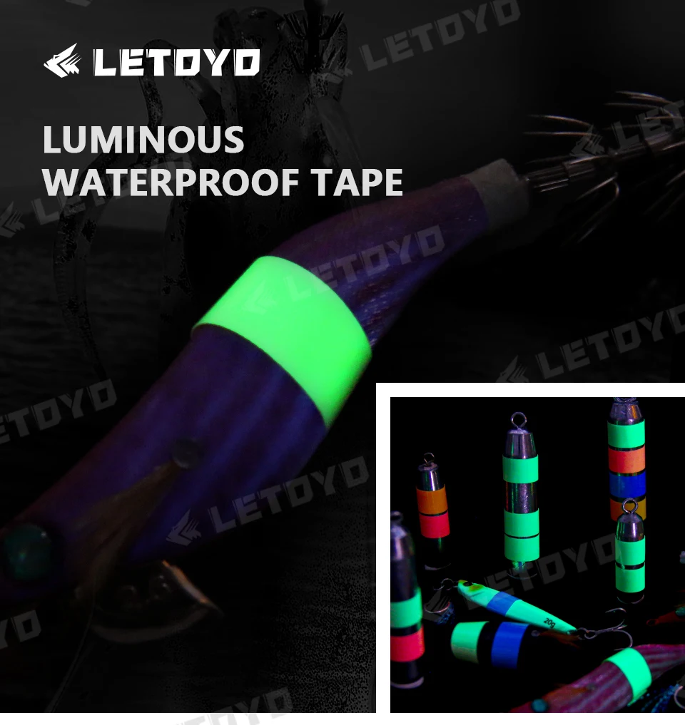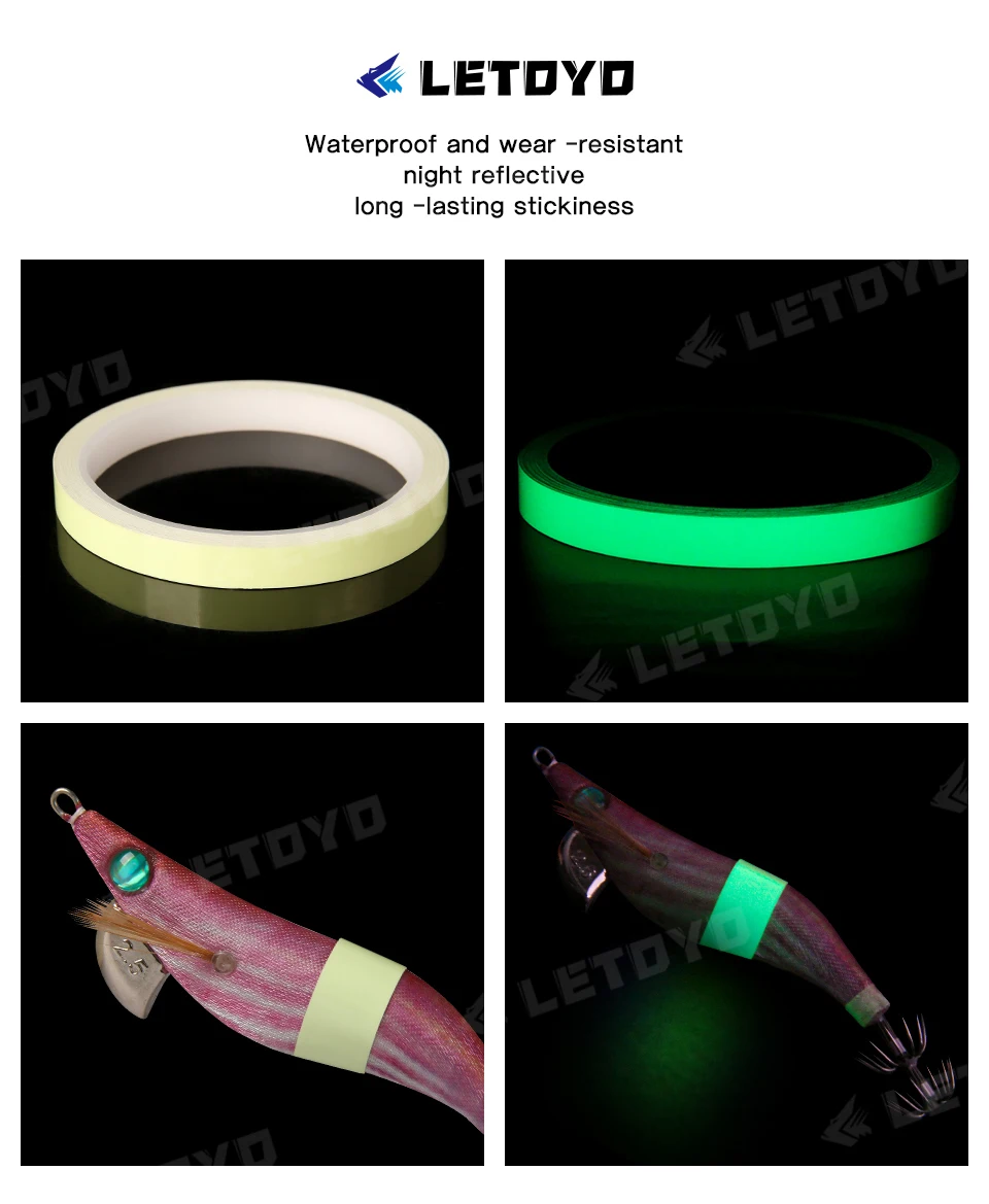 LETOYO Luminoso Cinta impermeable para señuelos de calamar Artículos de pesca Luminiscencia sostenible Para suministros de pesca de calamares con cebo