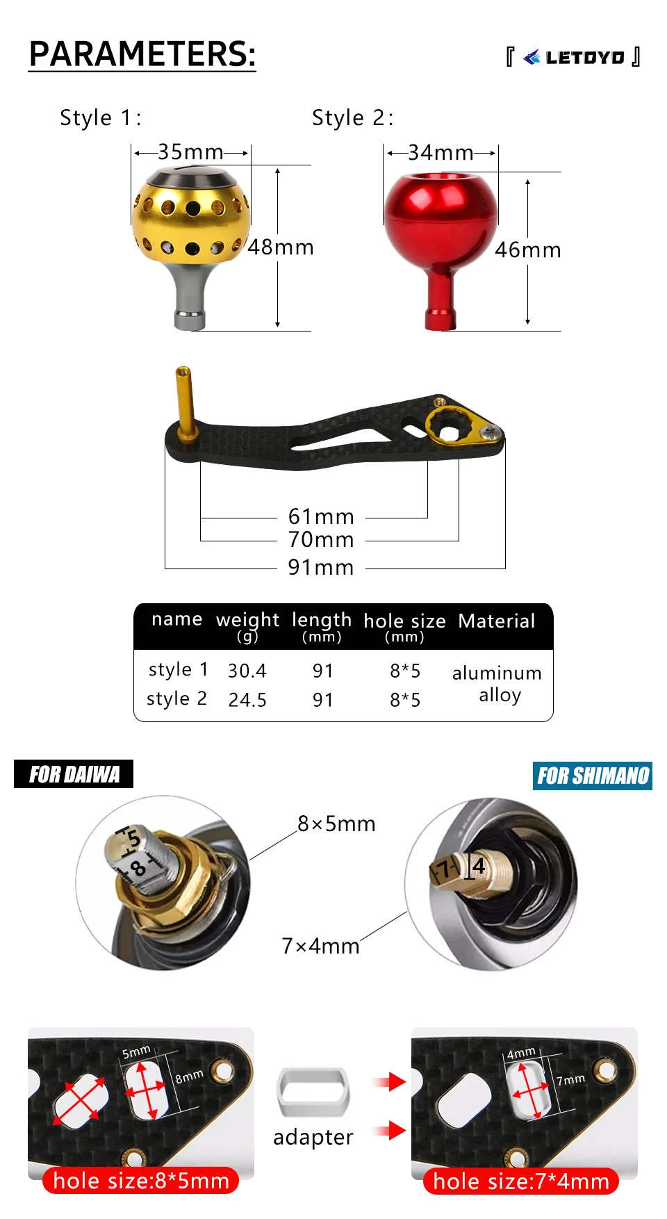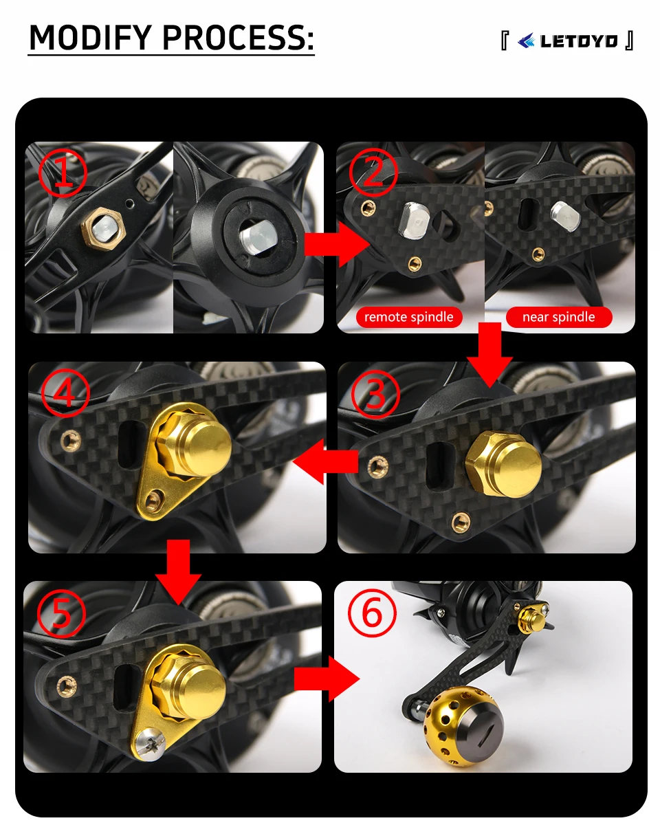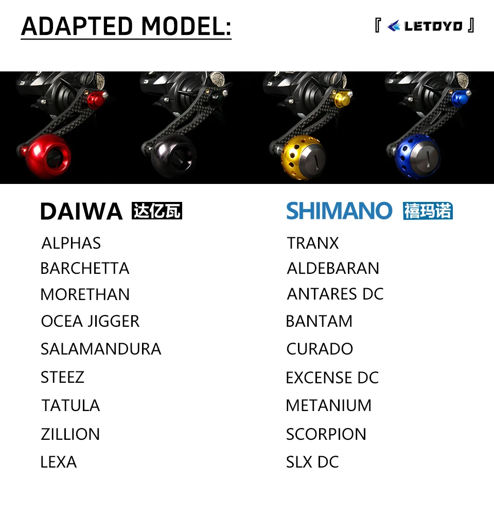LETOYO-mango de carrete de fibra de carbono, perilla de carrete de baitcasting para daiwa kastking ryobi rapala PENN Abu Garcia, accesorios de carretes de pesca
