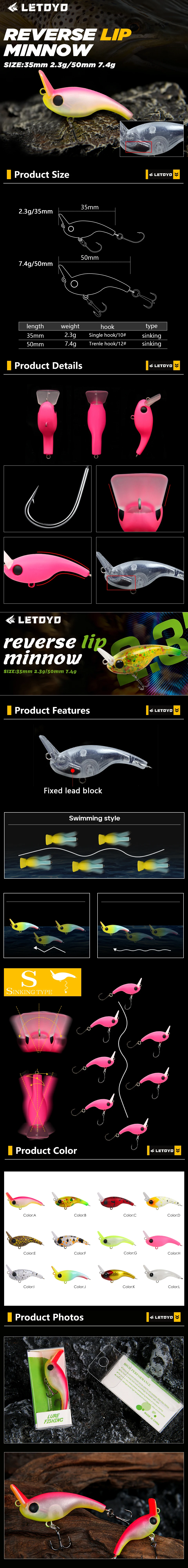 LETOYO Micro Minnow 2,0 señuelo 2,3g 7,4g Mini Crankbait de hundimiento lento cebo duro Artificial Wobblers señuelo trucha lubina Señuelos de pesca