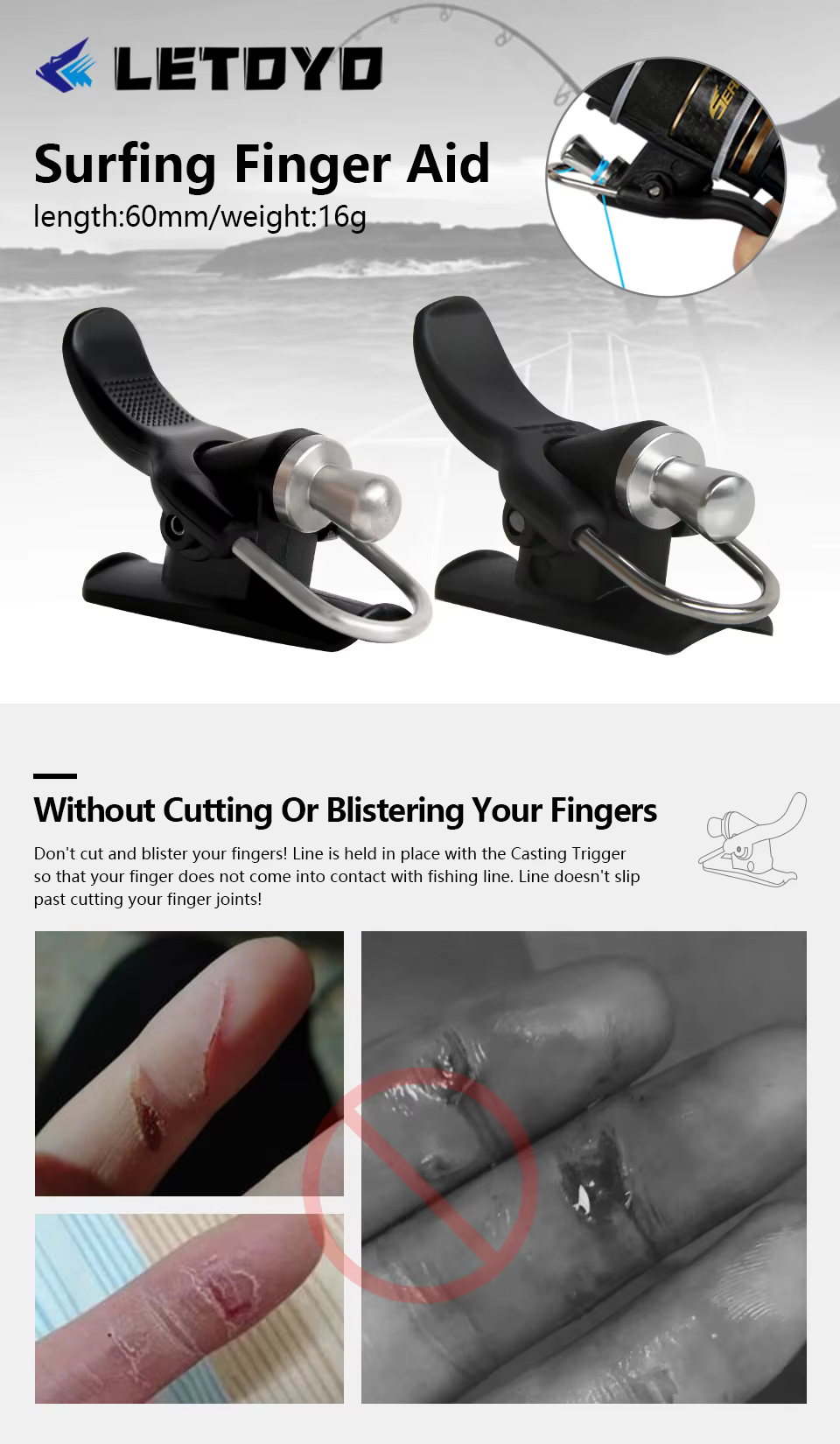 LETOYO nuevo gatillo de fundición antideslizante carrete fijo refuerzo de ayuda de fundición para carrete giratorio caña de pescar de mar aparejos de pesca