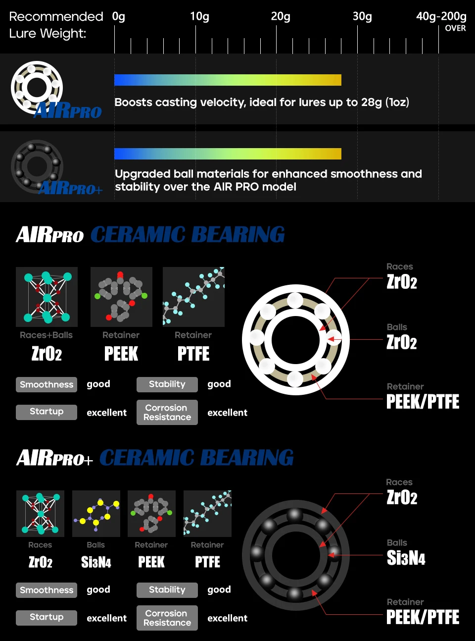 LETOYO rodamiento de cerámica AIR PRO rodamiento de carrete carretes de pesca accesorios de pesca para carrete de baitcasting shimano daiwa