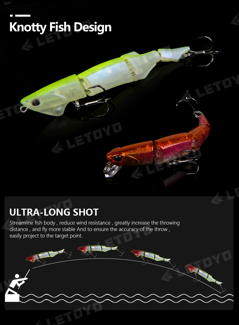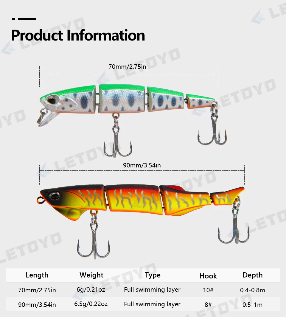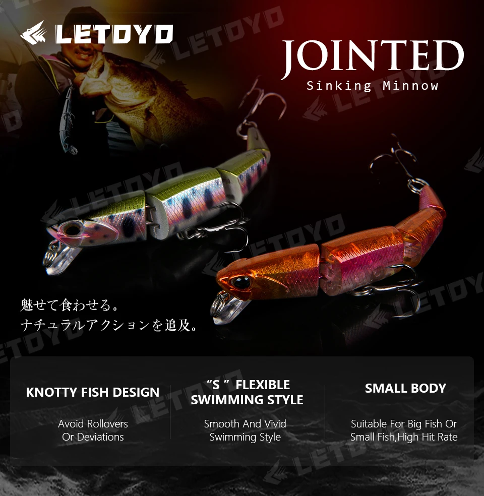 LETOYO-señuelo de pesca articulado de 70 y 90mm, señuelos de pececillo que se hunden, cebos duros artificiales Jerkbait para área de trucha, lubina, perca