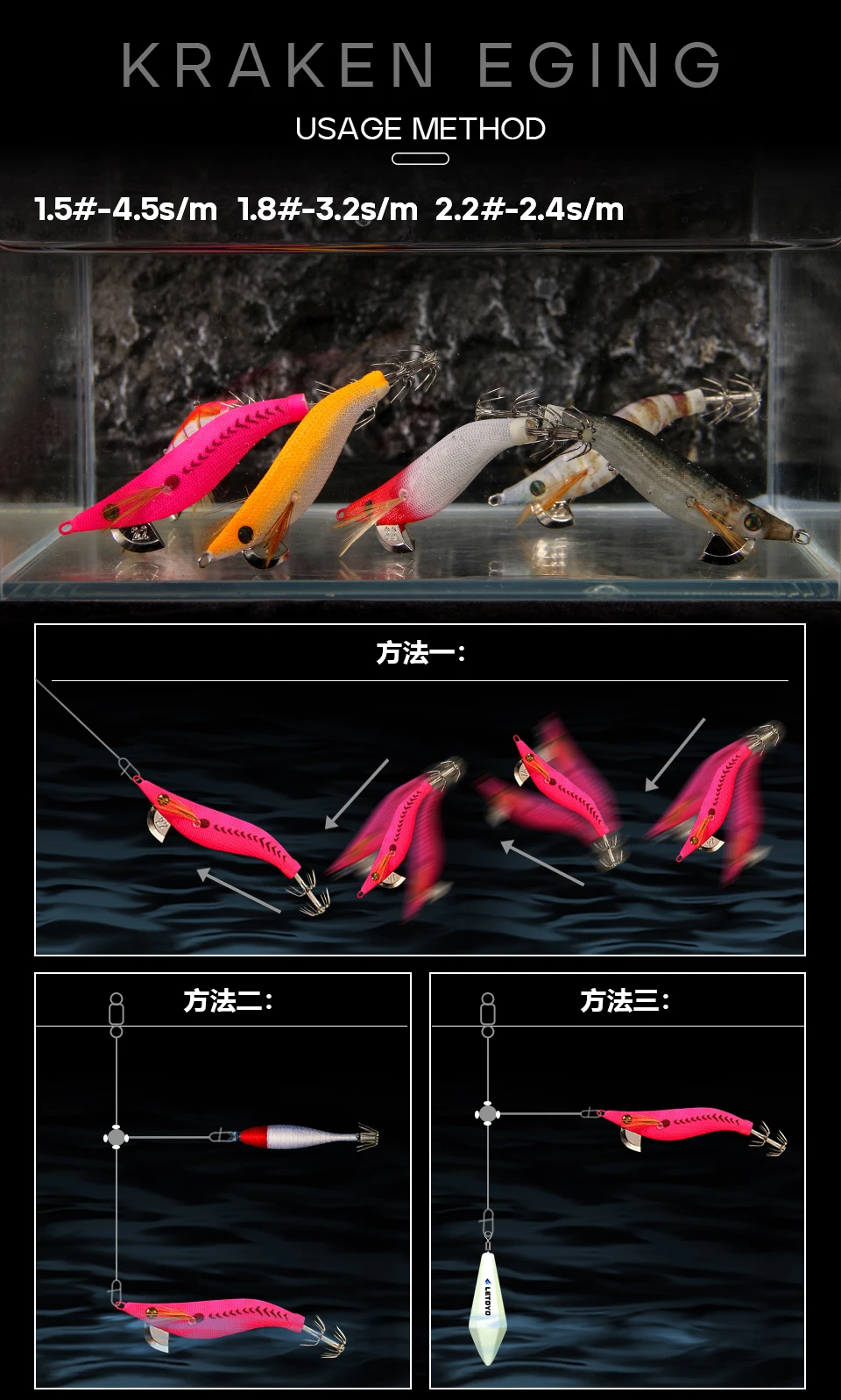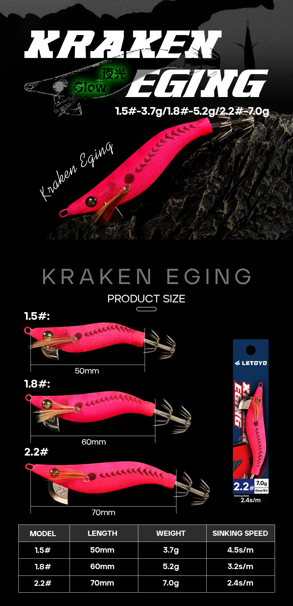 LETOYO, señuelo de pesca de calamar de 3,7g/5,2g/7g, anzuelo de plantilla de pulpo Egi 1,5 #/1,8 #/2,2 #, camarón de madera para camarones de mar y agua salada eging pesca calamar señuelo calamar gancho calamar señuelo