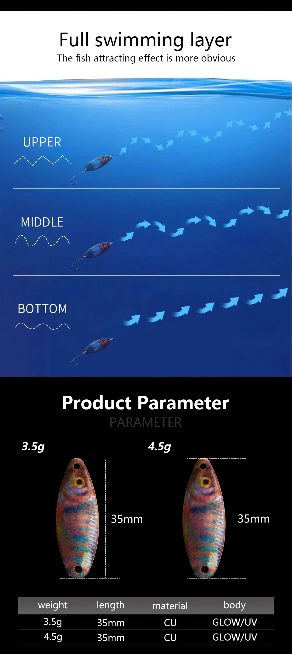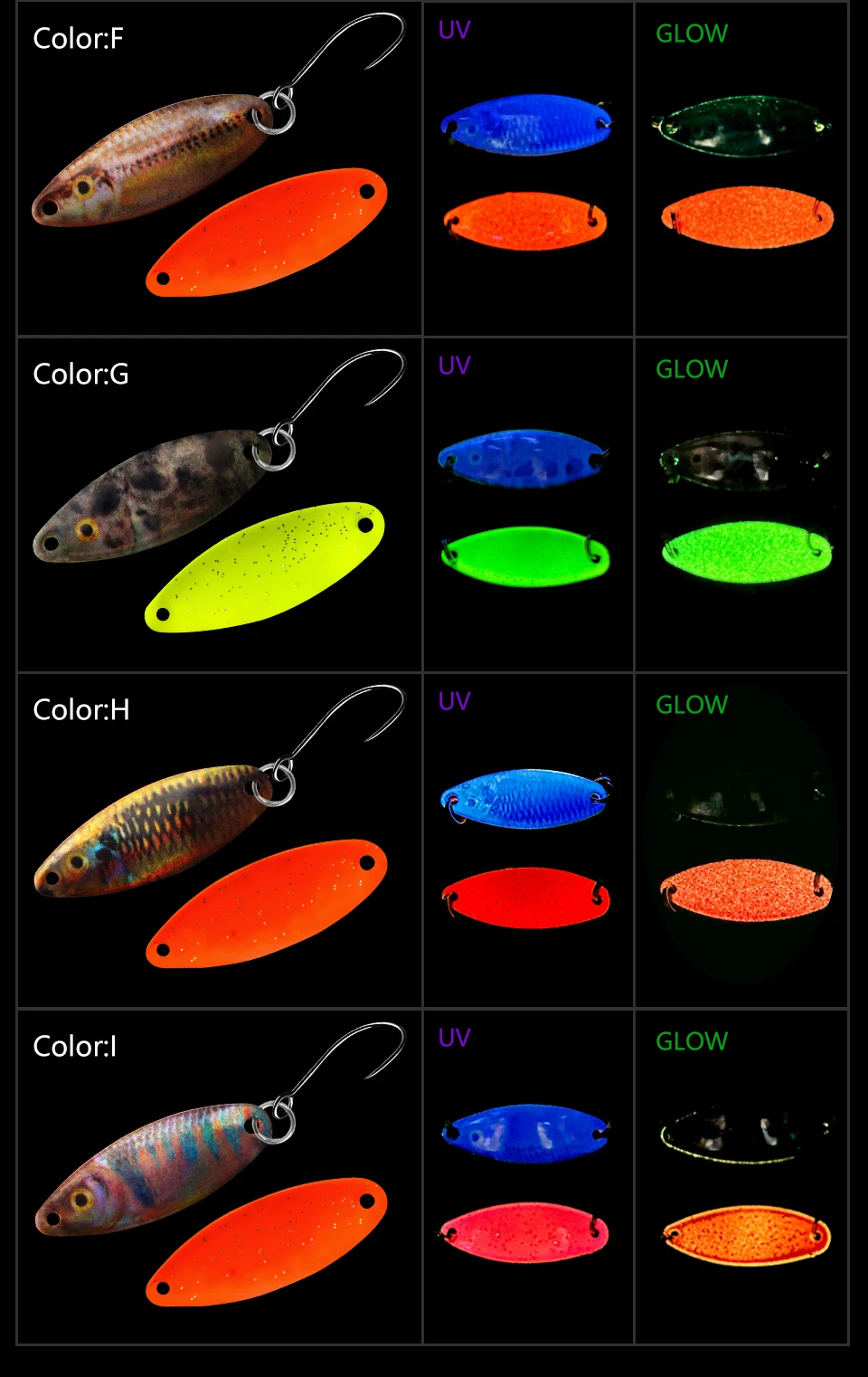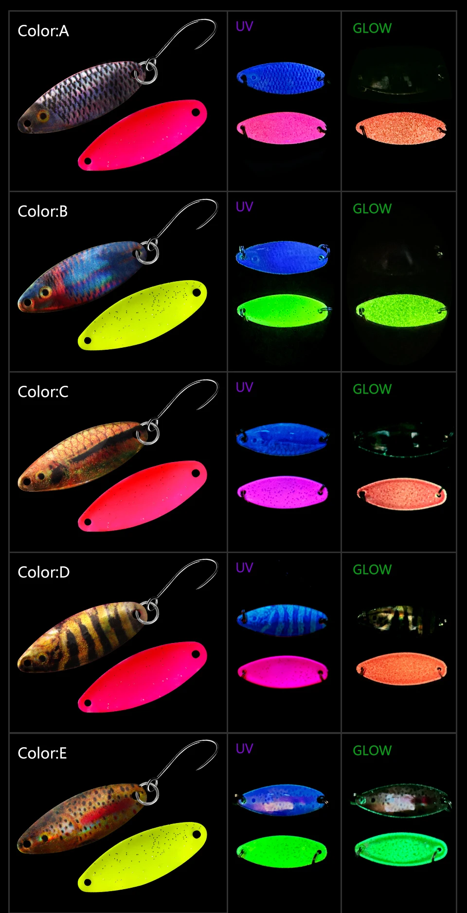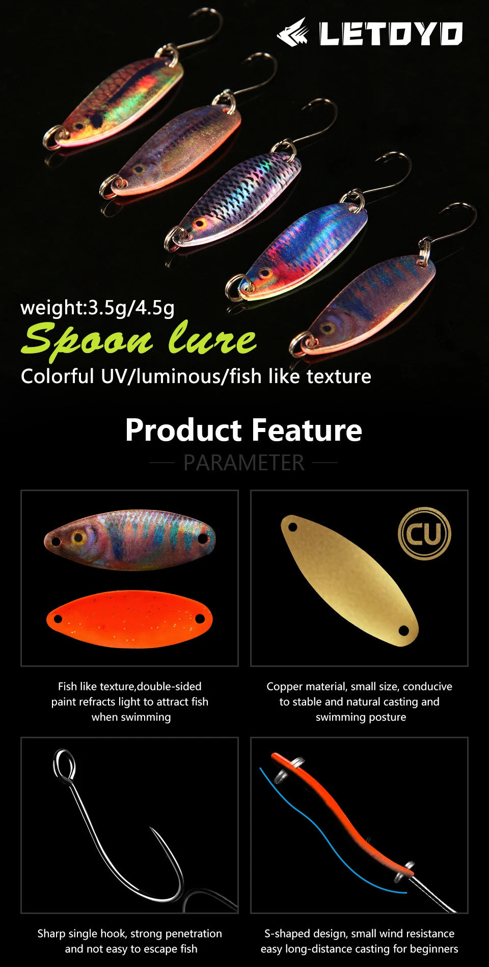 LETOYO-señuelo de pesca con cuchara luminosa, 3,5g, 4,5g, textura tipo pez, Spinner, pintura de doble cara, cuchara en forma de S