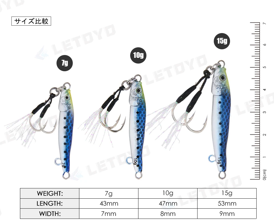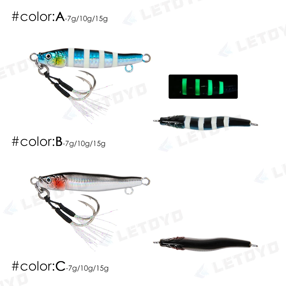 LETOYO-señuelo de pesca giratorio Artificial, cebo de pesca Jigging de orilla Micro Jig, Jigging de Japón, plantilla de salto de Metal, fundición de trucha, pececillo, 7g, 10g, 15g