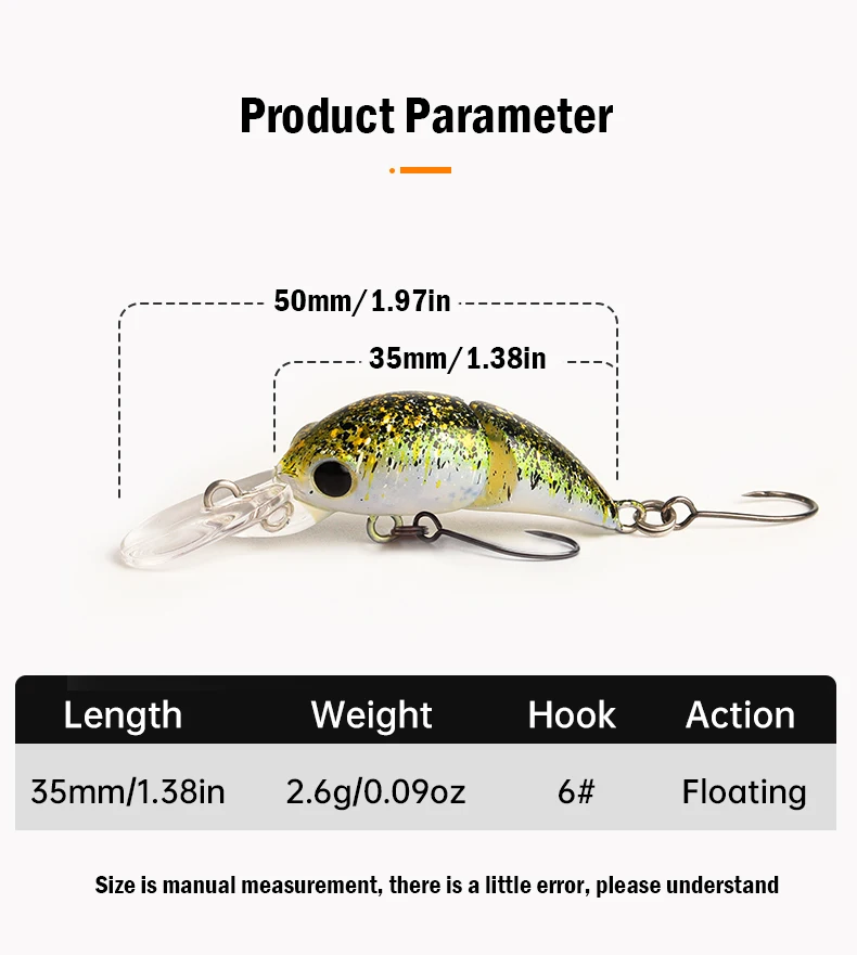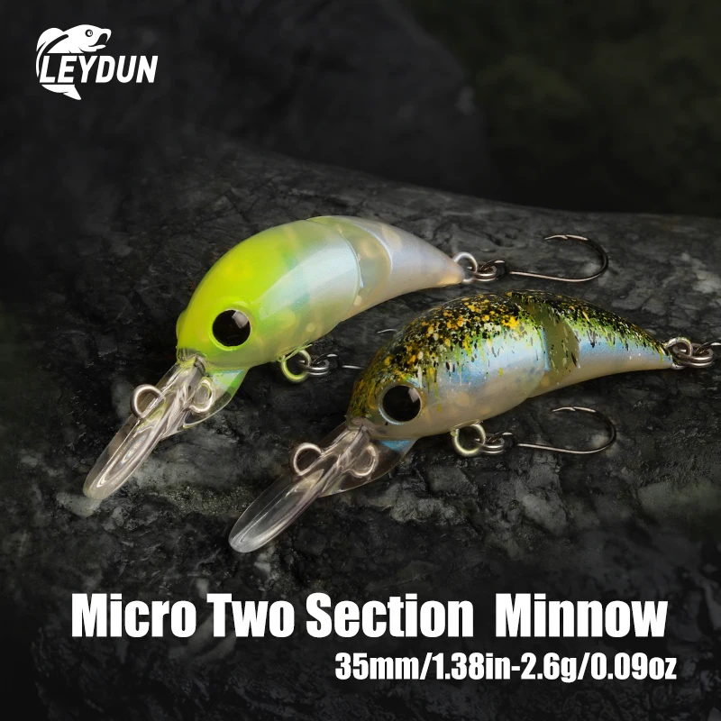 LEYDUN-señuelos de pesca Micro de 35mm y 2,6g, dos secciones, Minnow flotante, cebo de buceo poco profundo, Crankbait, pesca, Swimbaits artificiales