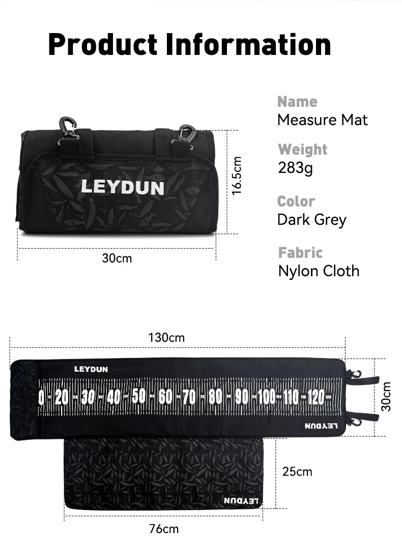 LEYDUN 125cm Estera Medida de Pescado Herramientas de Pesca Viene con regla de medición Y Acolchado Arrodillado Base de Pesca Tackle Herramienta