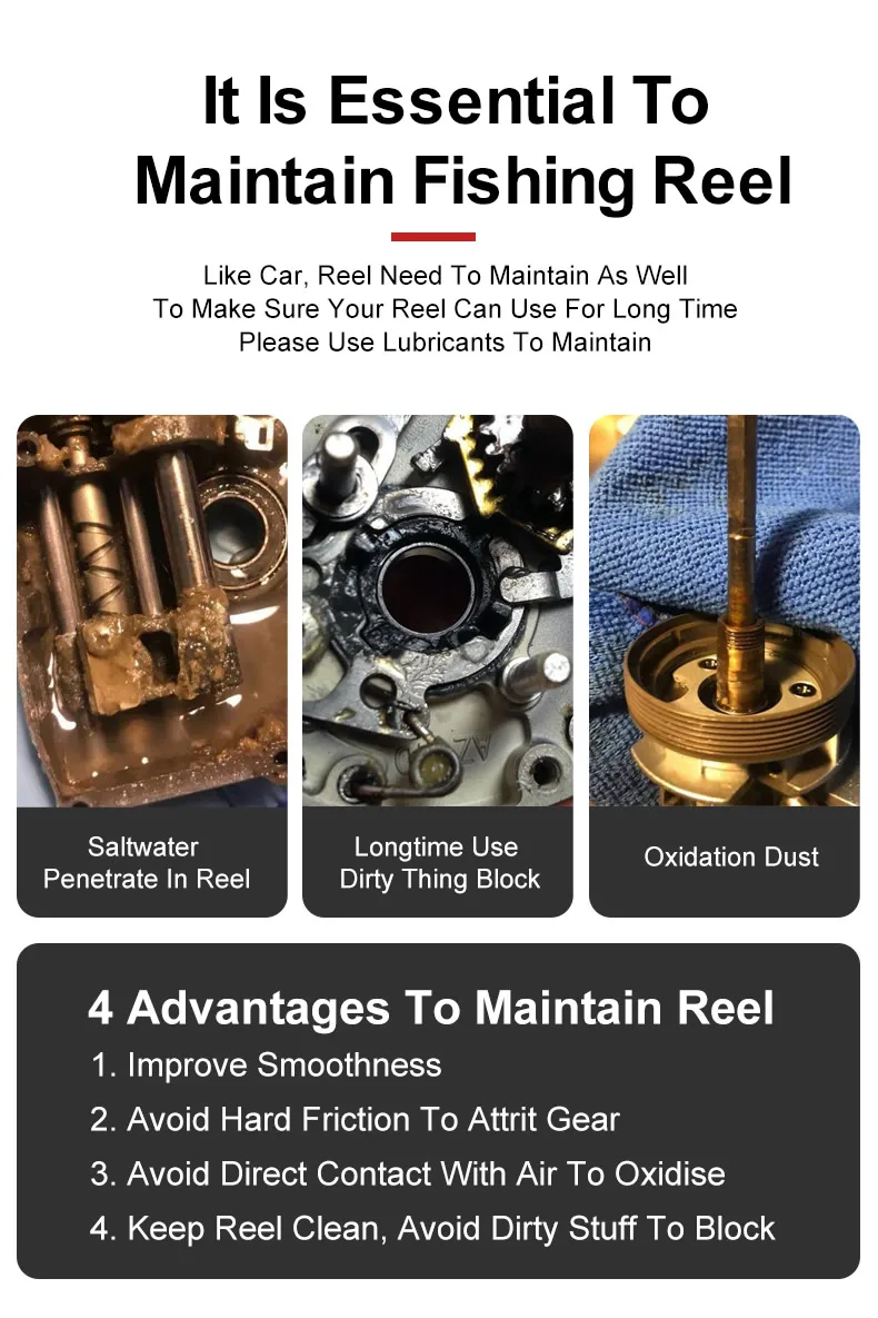 • Herramienta de mantenimiento de carrete de pesca :Este aceite es una herramienta esencial para el mantenimiento del carrete de pesca, asegurando un rendimiento óptimo en cada uso.