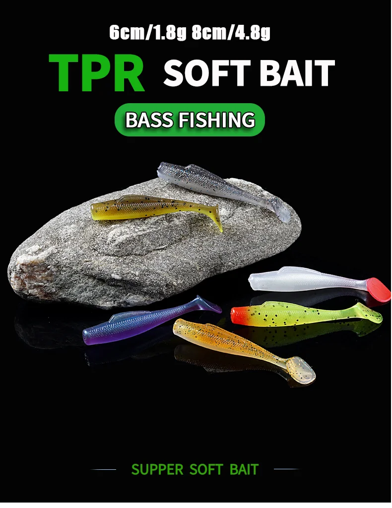 LEYDUN nuevos cebos blandos Señuelos de pesca 60mm 80mm 6 uds cola en T natación alta calidad Artificial Japón forma lubina Wobblers Wrom señuelo suave